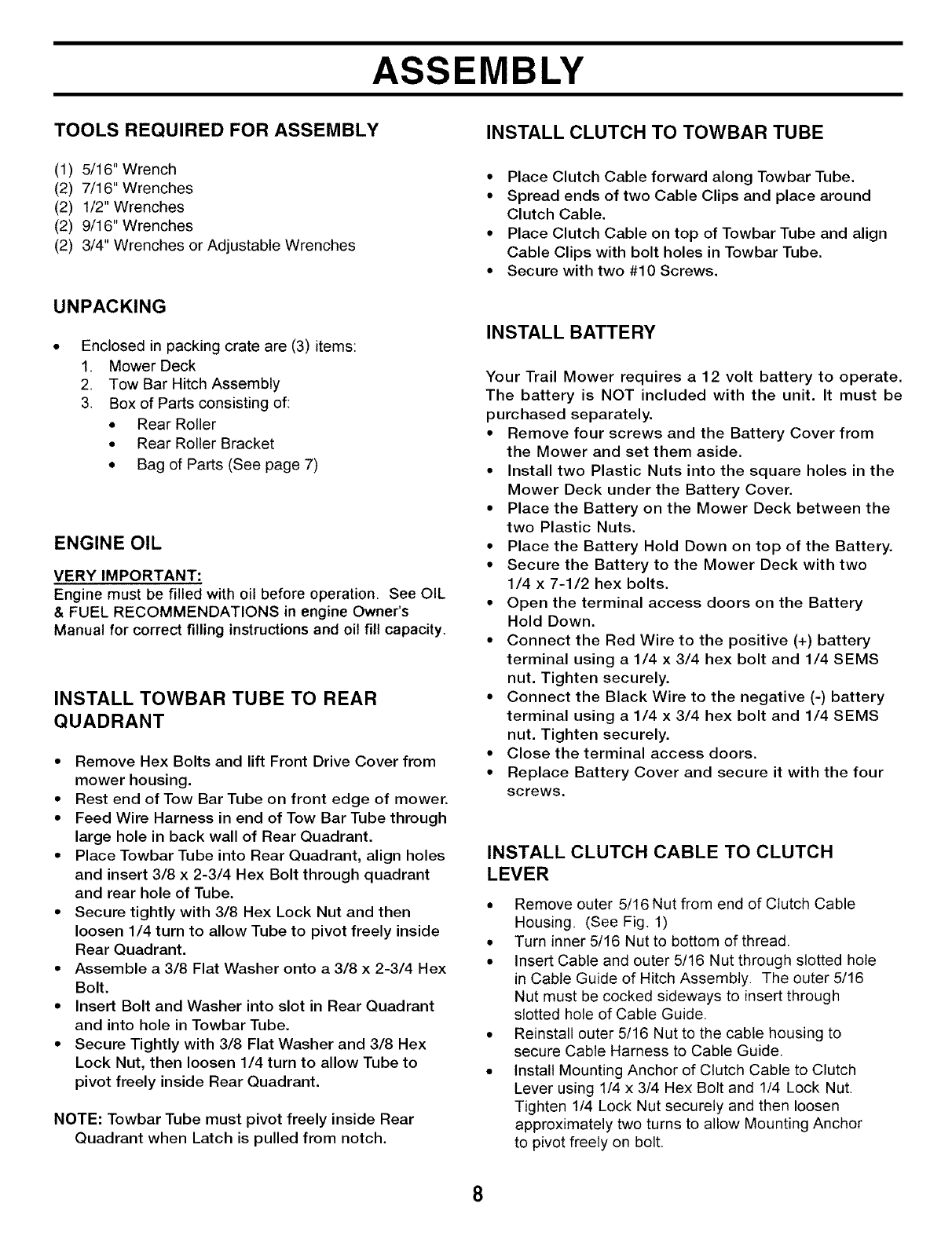 NOTE: Your mower deck will require a 12 volt battery to operate.
