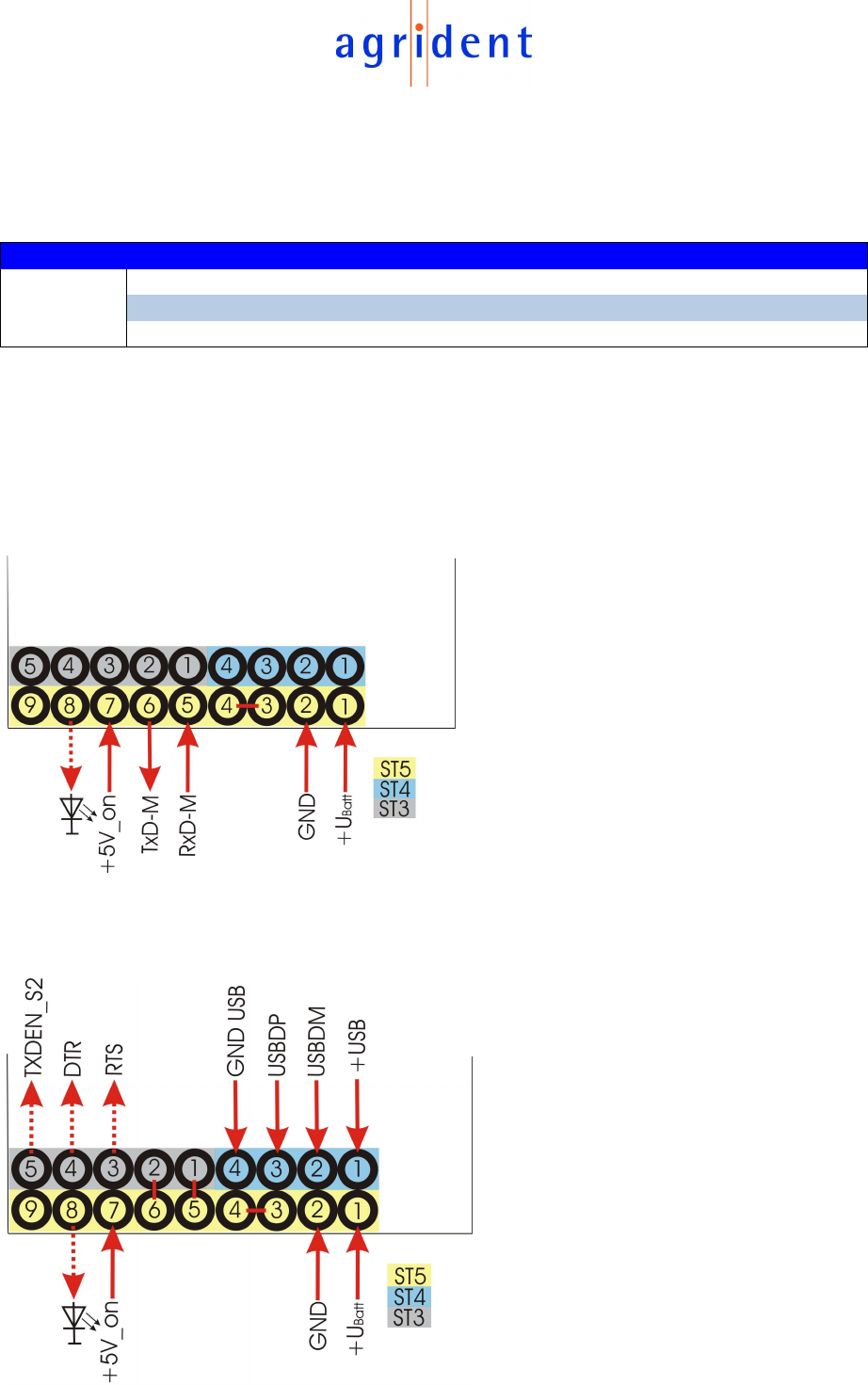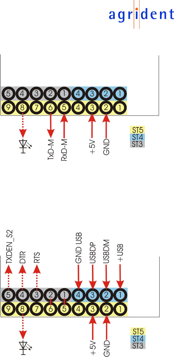 Connector ST4 is a standard USB interface. ST3 provides the signals RxD and TxD