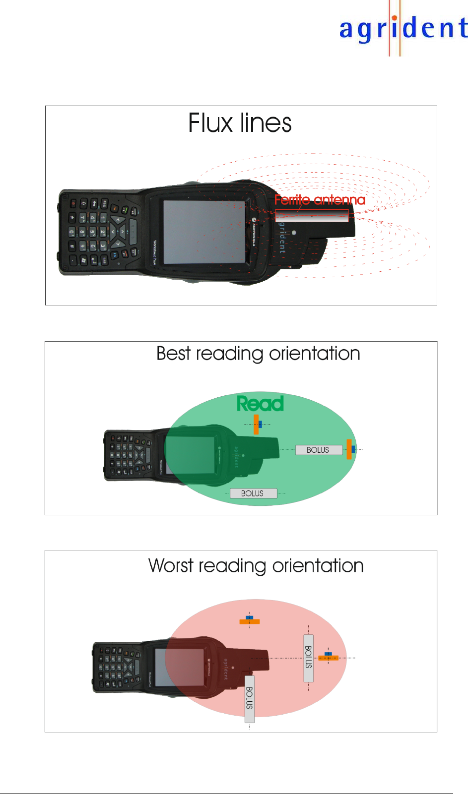 Since Boluses also contain glass tags, the reading orientation for injectables is the same as
