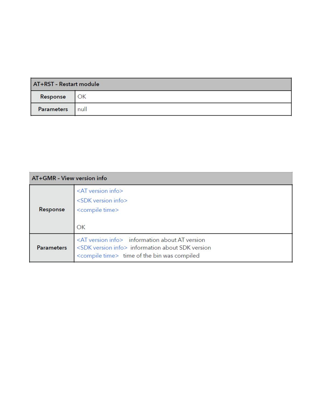 This AT command is used to check the version of AT commands and SDK that you are using, the type