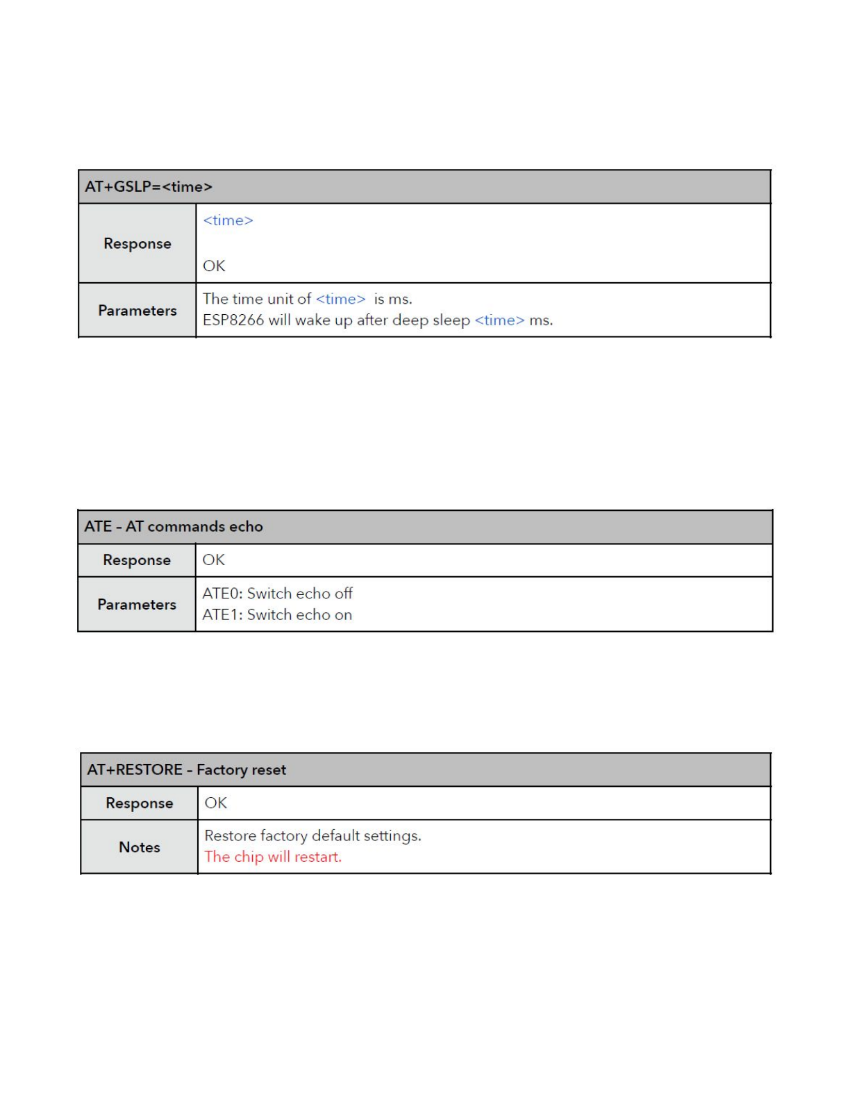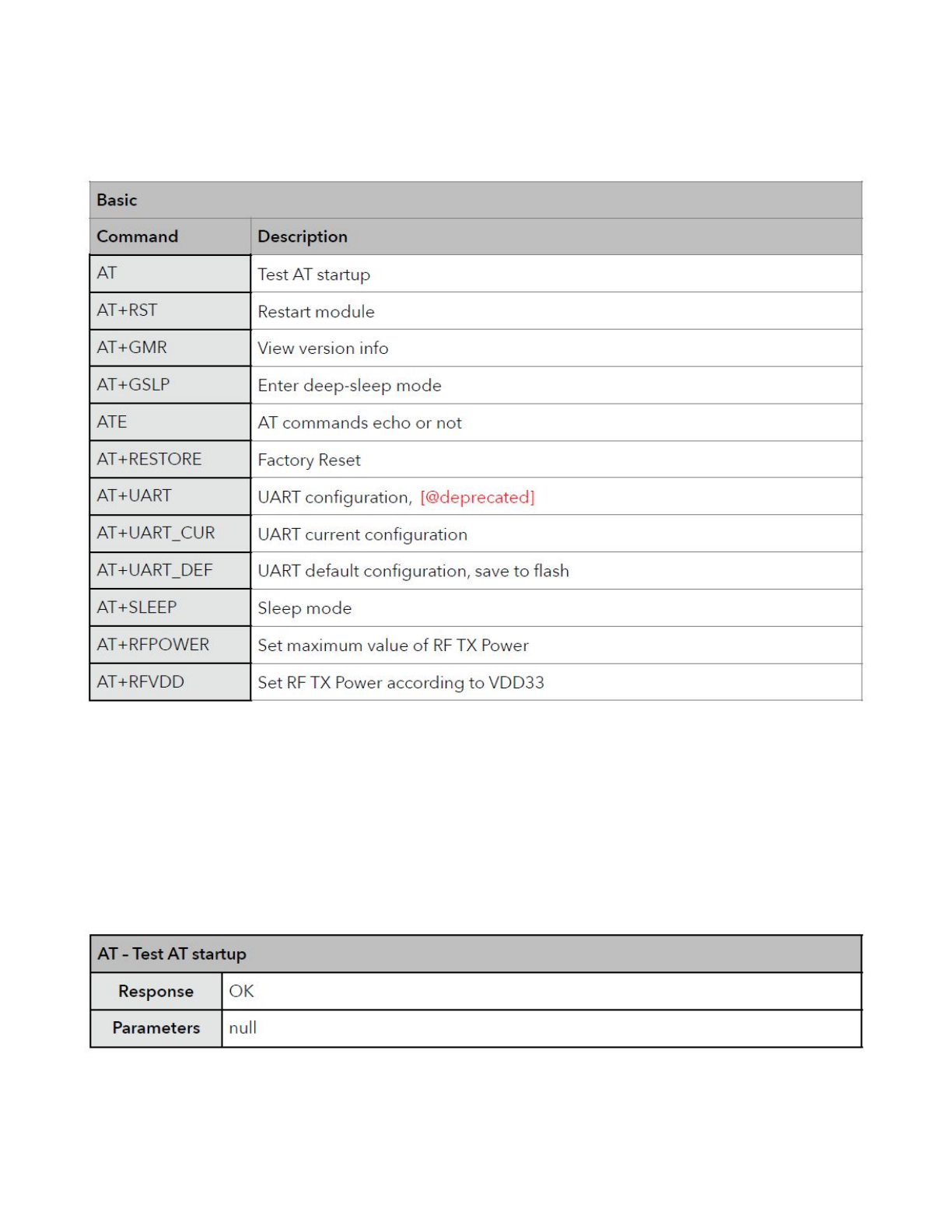 AT commands set is divided into: Basic AT commands, WiFi related AT commands, TCP / IP AT