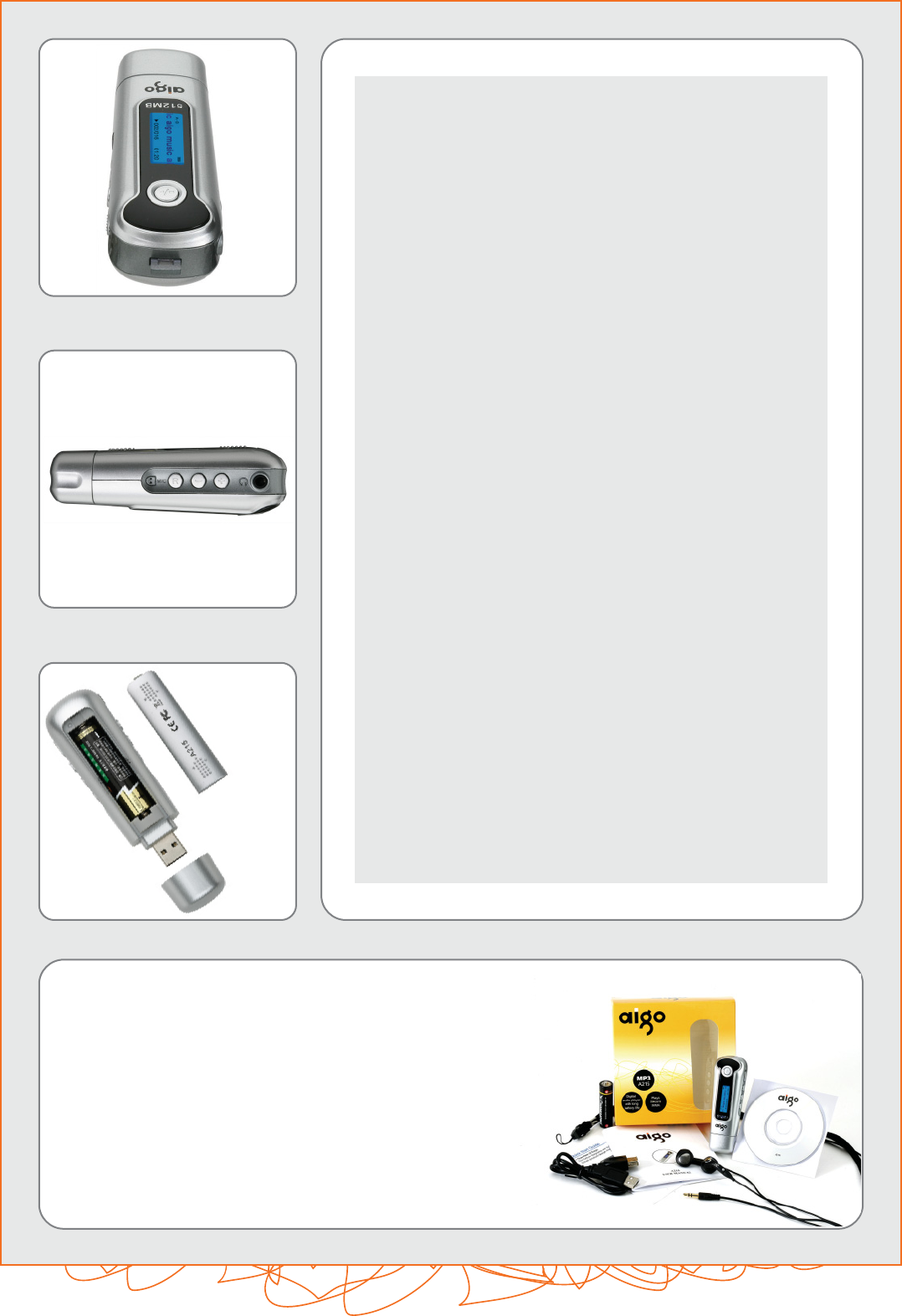 Aigo A215 Users Manual Product Sheet