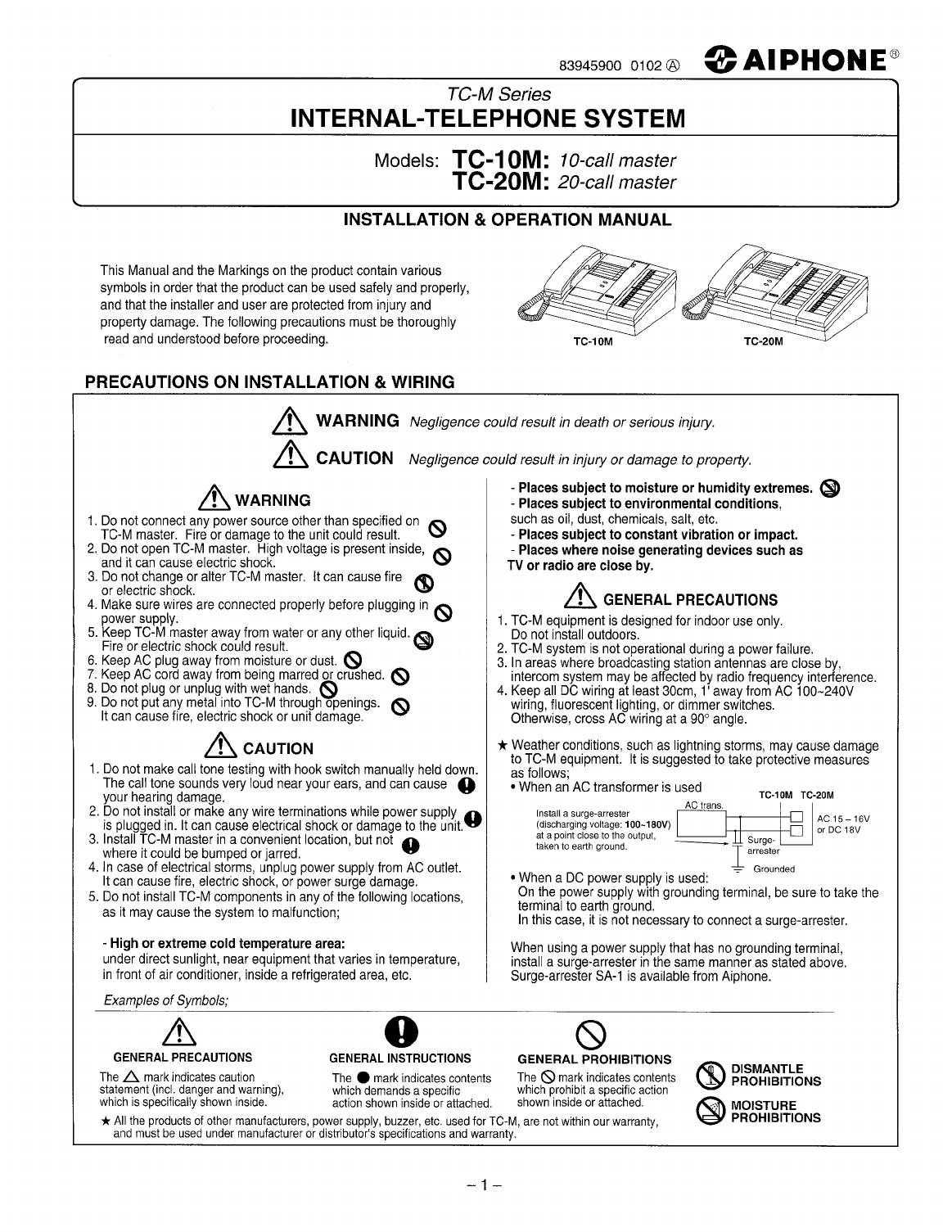 TC-M Internal Telephone-Type Intercom Instructions TC-M Internal Telephone-Type Intercom Instructions
