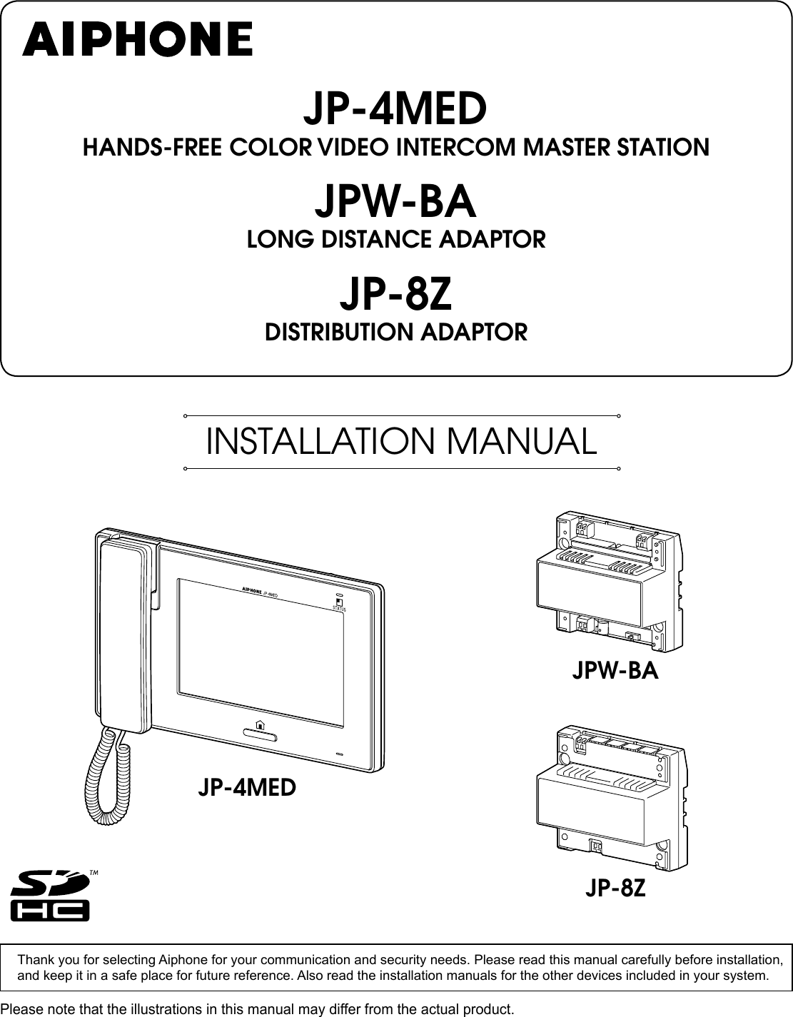 Aiphone JP 4MED_IM_14.08.01 4MED Hands Free Color Video Intercom Master Station Instructions Installation ENGLISH