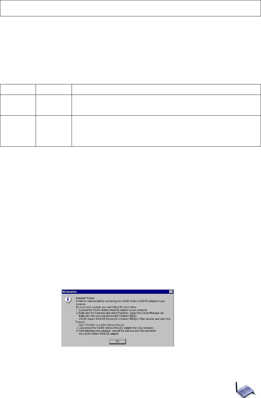 3. INSTALLATION OF THE WLAN MINI-USB ADAPTER FOR WINDOWS 98SE, ME,