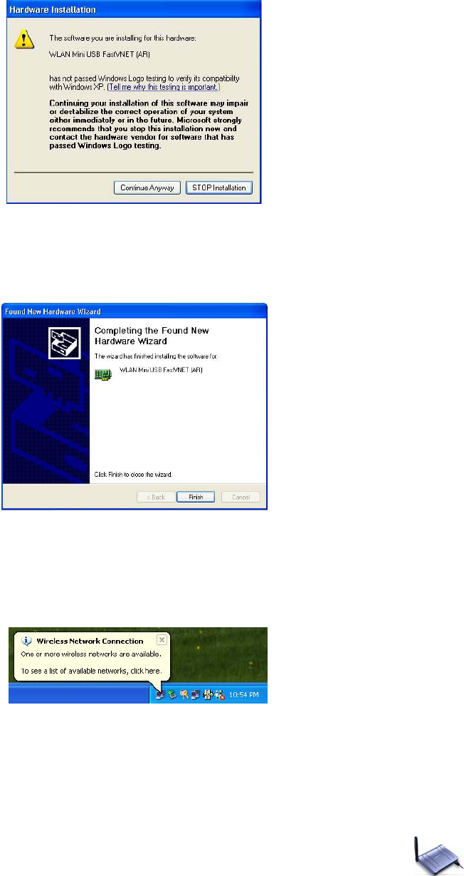 j) Windows XP will automatically detect the presence of WN-210 and display the