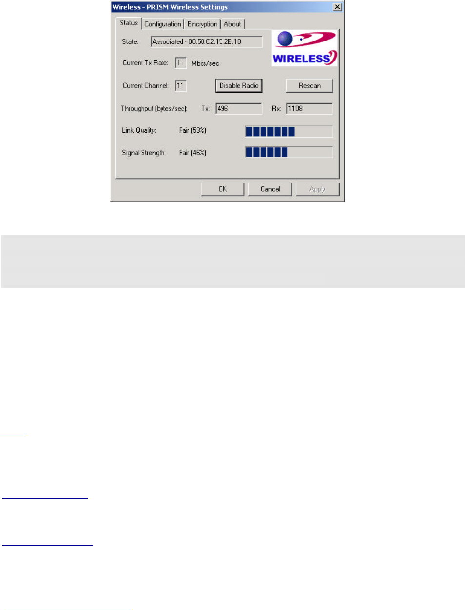 Security 64 bit WEP Encryption (Optional: 128 bit)