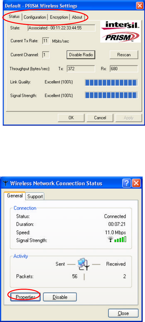 slot on your computer, or click Disable Radio on the Status tab of the PRISM Wireless Settings
