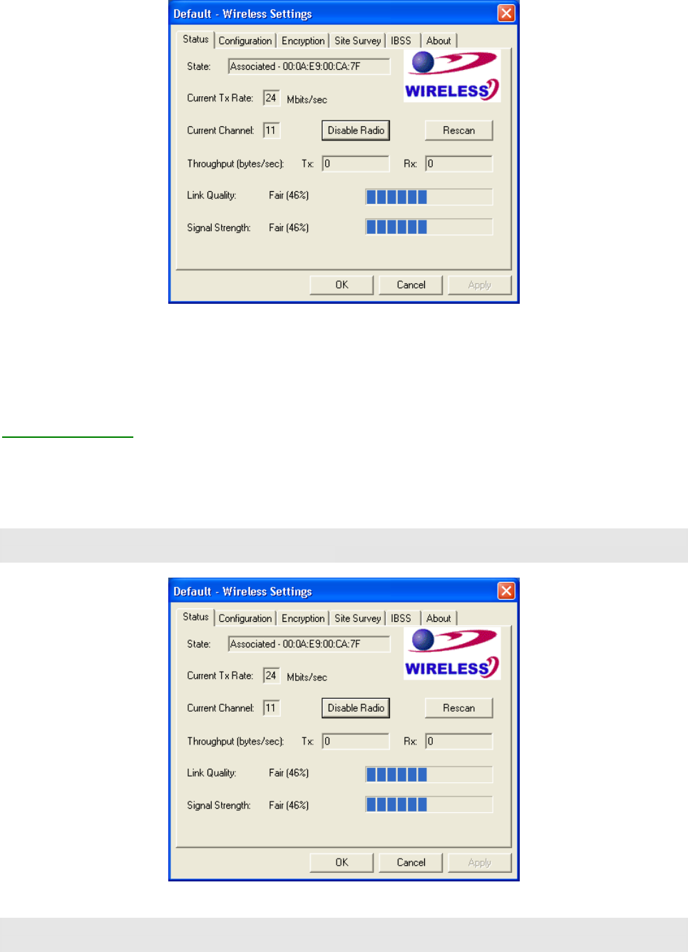 reason, click Disable Radio on the Status tab of the Wireless Settings dialog box. Thus, be sure