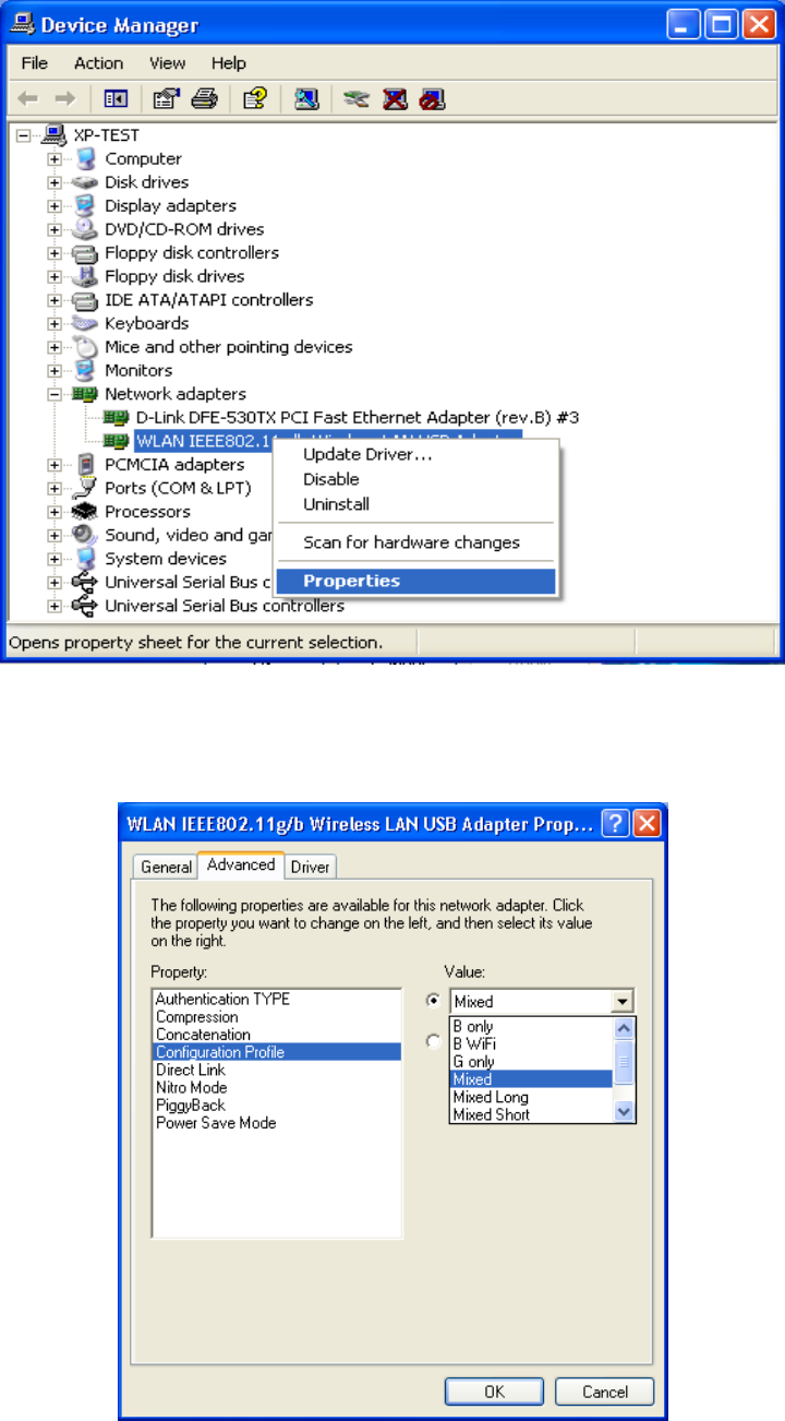 Note: If you wish to use the attached application – WLAN-54G USB Configuration Tool of the 802.11g