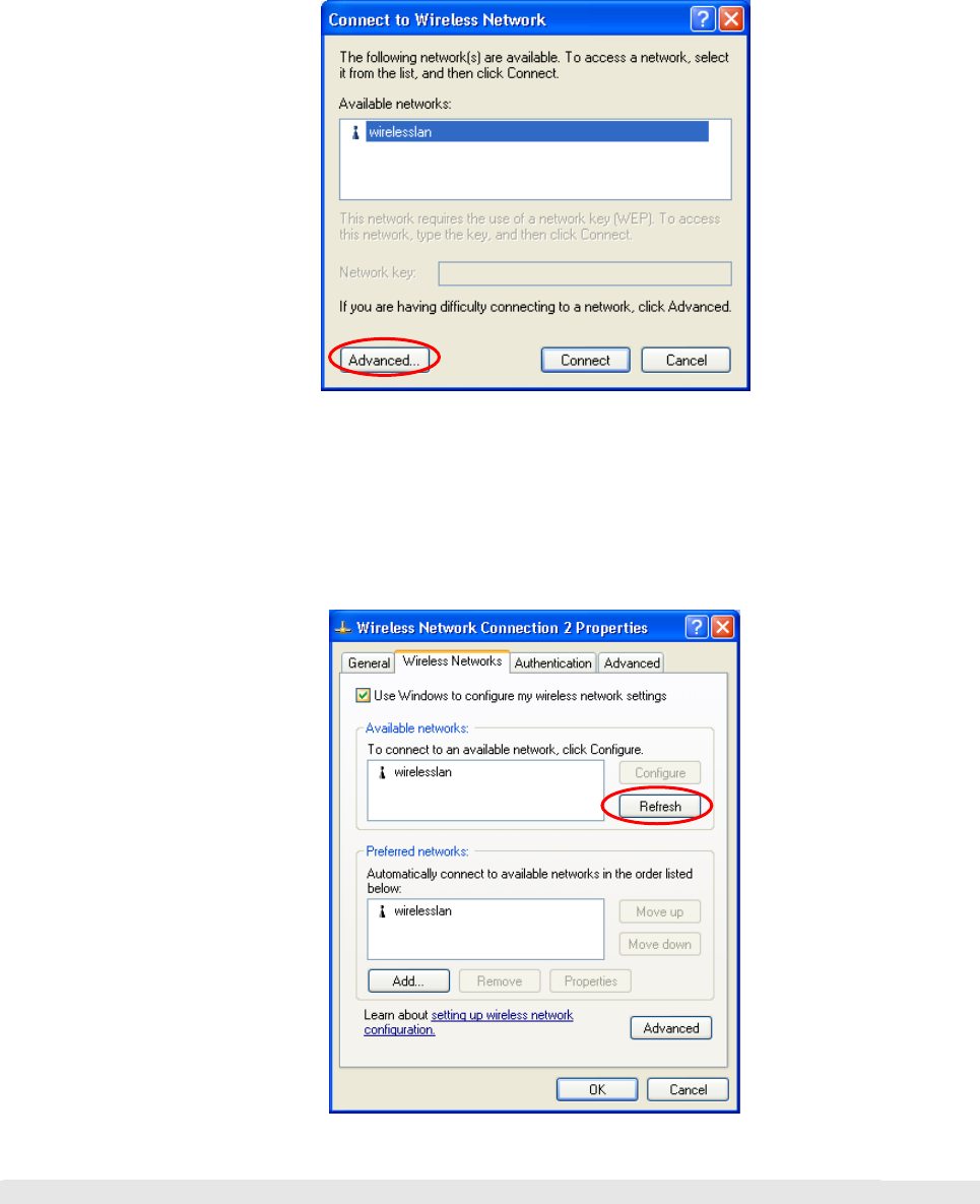 default settings, click the Advanced button in the Wireless Network Connection Properties