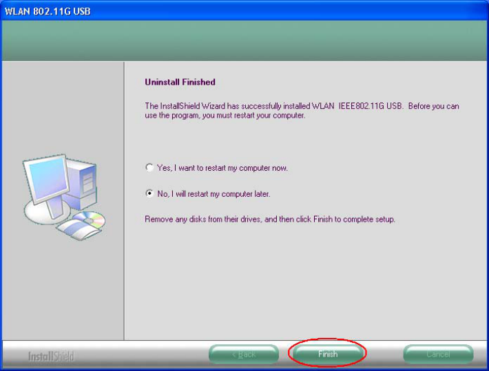 1. Execute the uninstall function through the WLAN-54G USB Uninstall command of