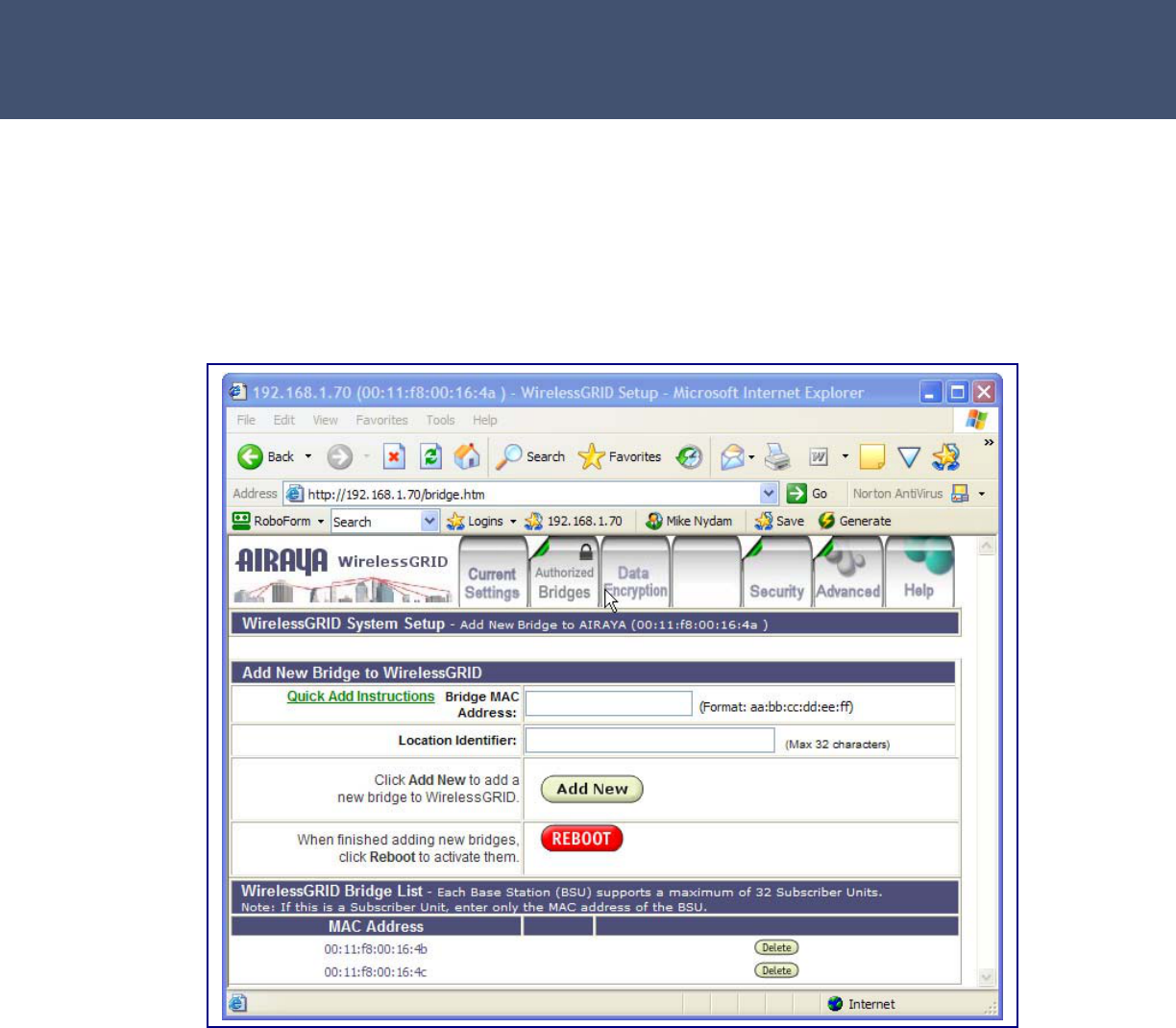 have an entry in its WirelessGRID-300 Bridge List for the MAC address of the