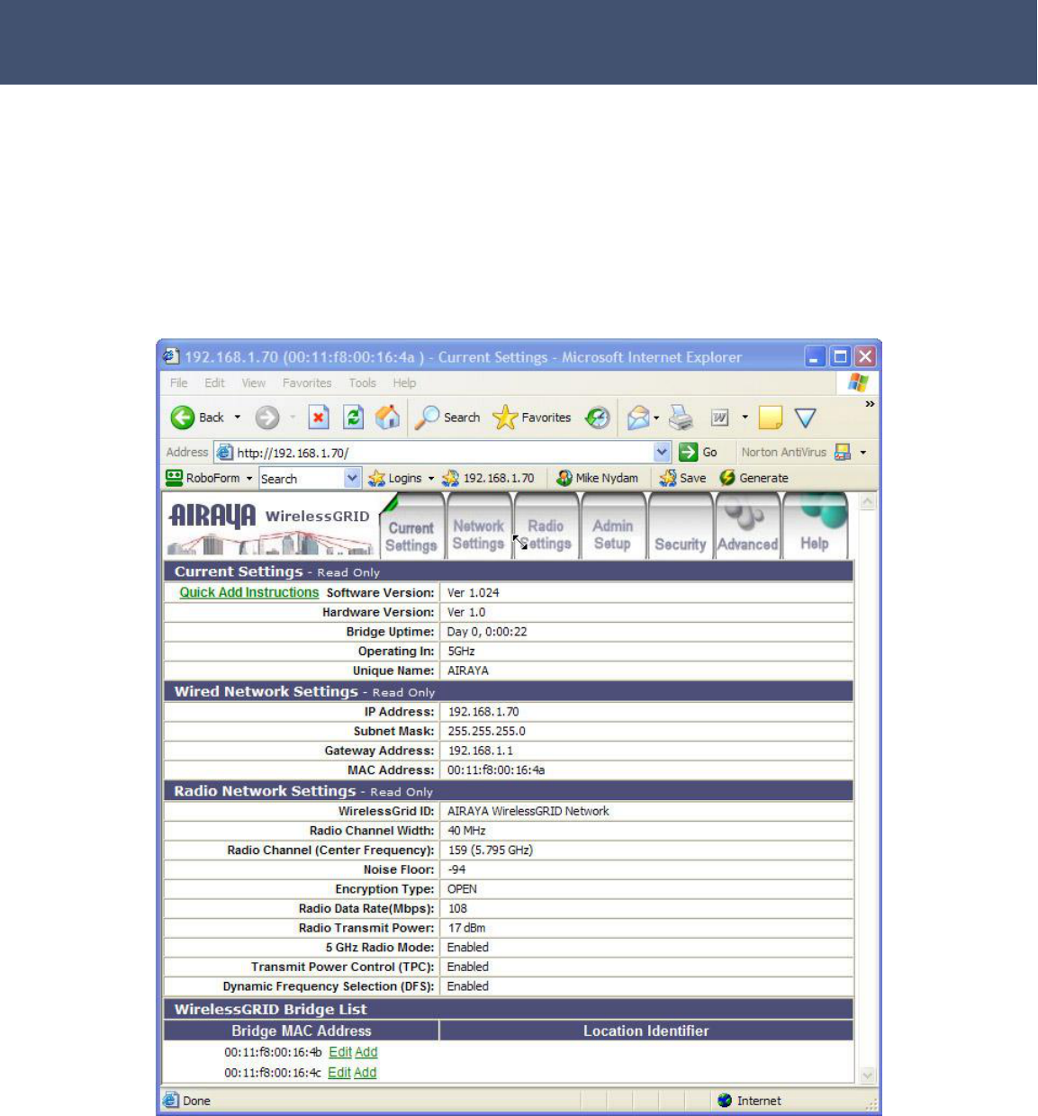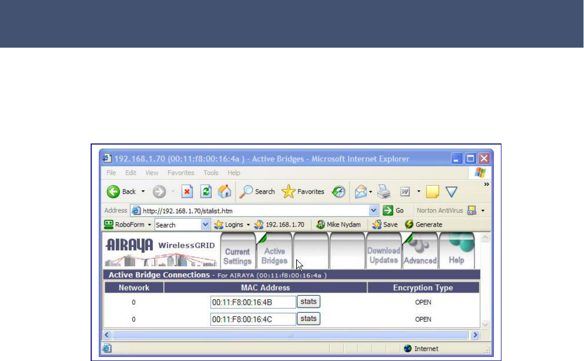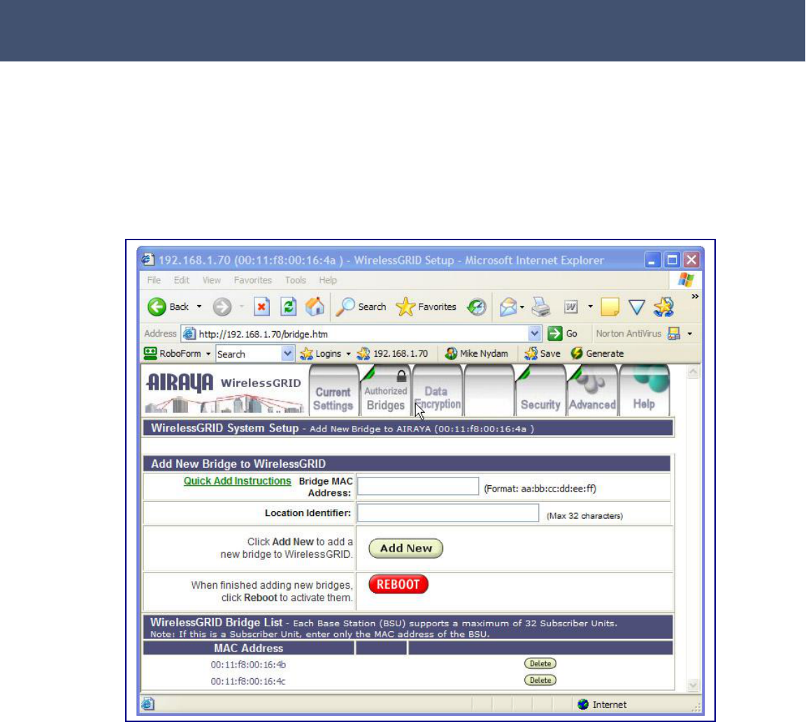 have an entry in its WirelessGRID-300 Bridge List for the MAC address of the