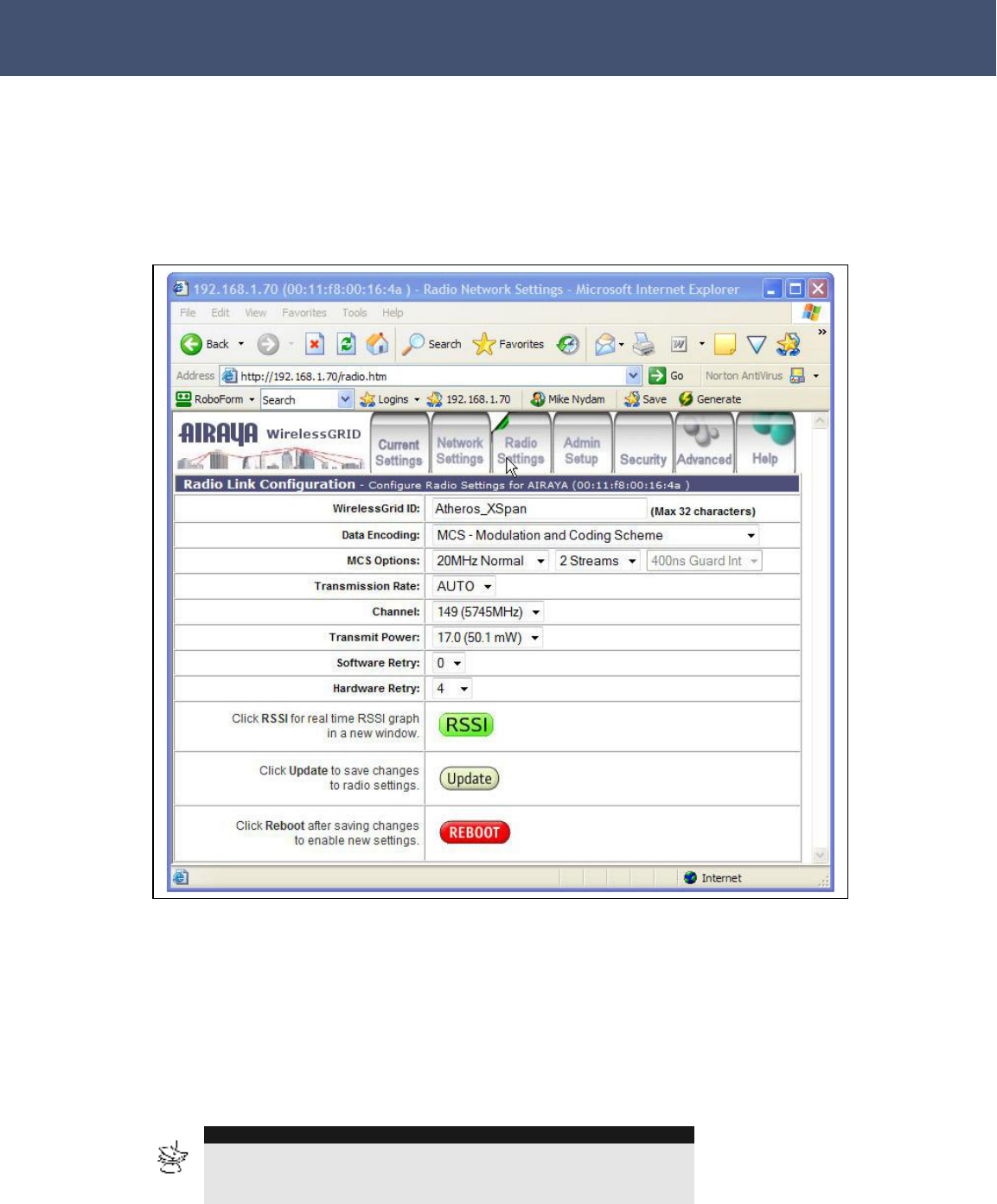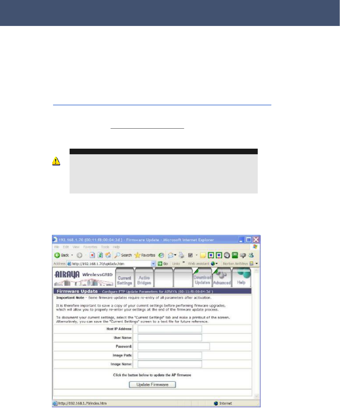 “Current Settings” tab using your web browser and the instructions in this