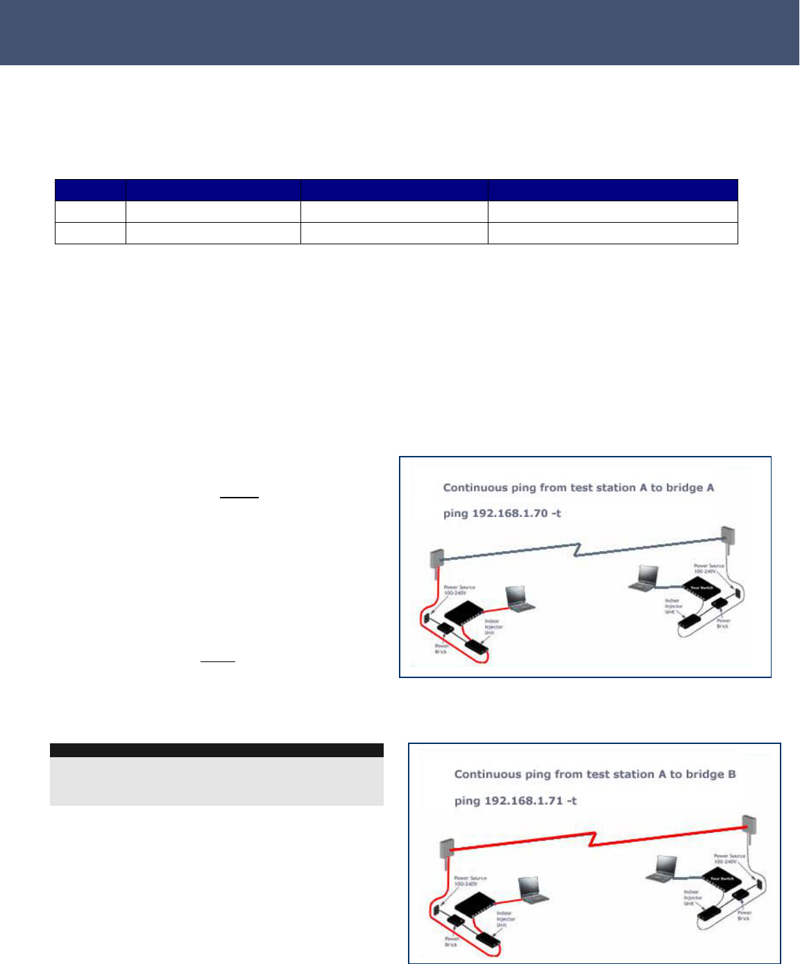 different IP address, you can power up all SU’s and each one should be ping-able.