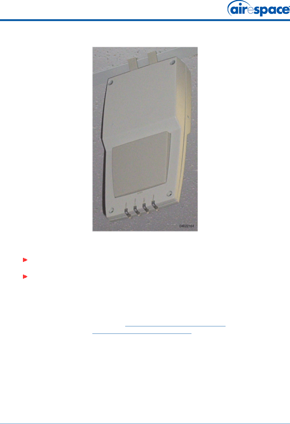 •Airespace AP mounting options: hanging from a ceiling, in the ceiling plenum, projecting away