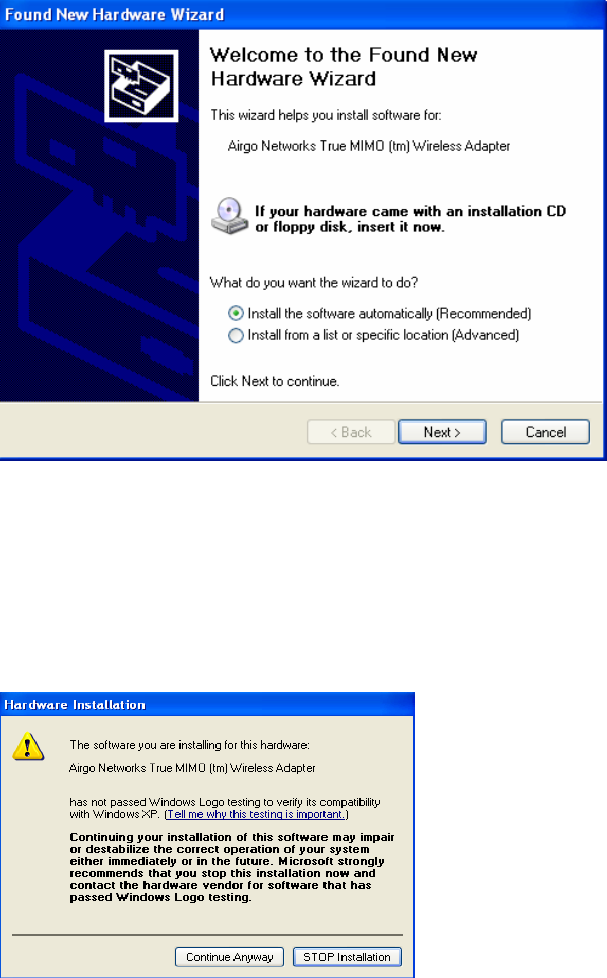 Airgo Networks Inc. Airgo 3000 Series USB Adapter 2X2 Installation and User Guide