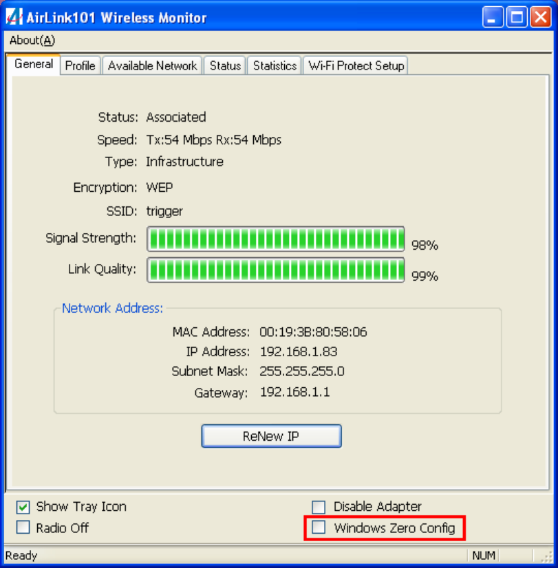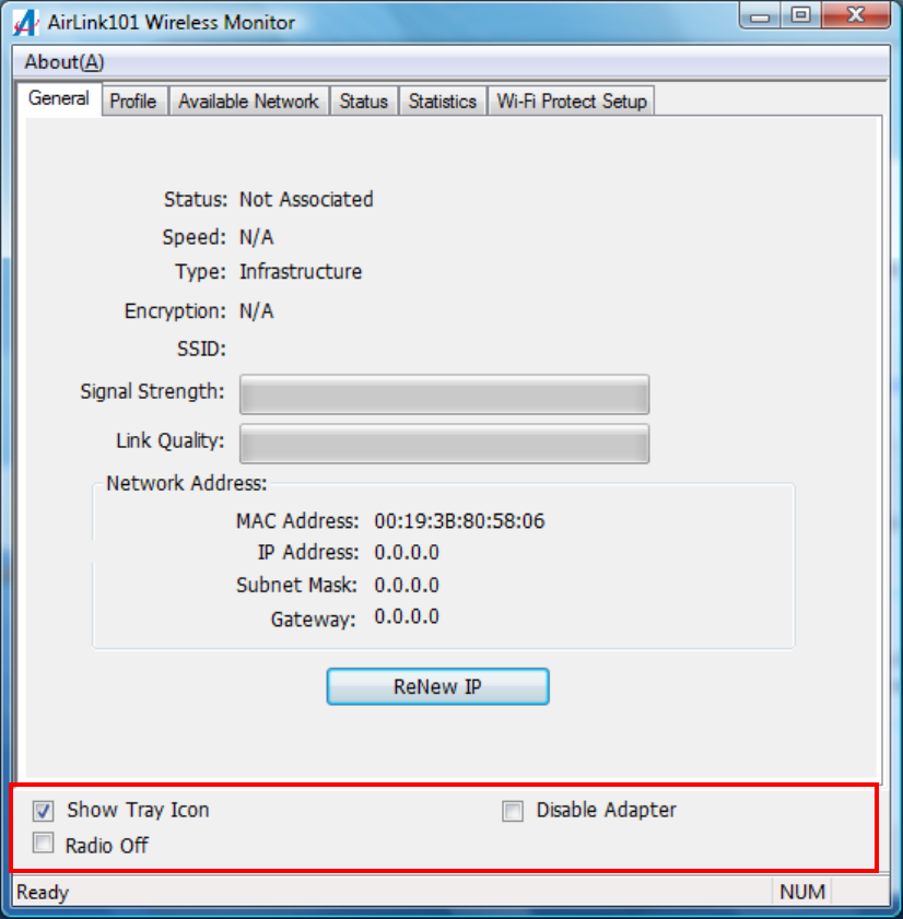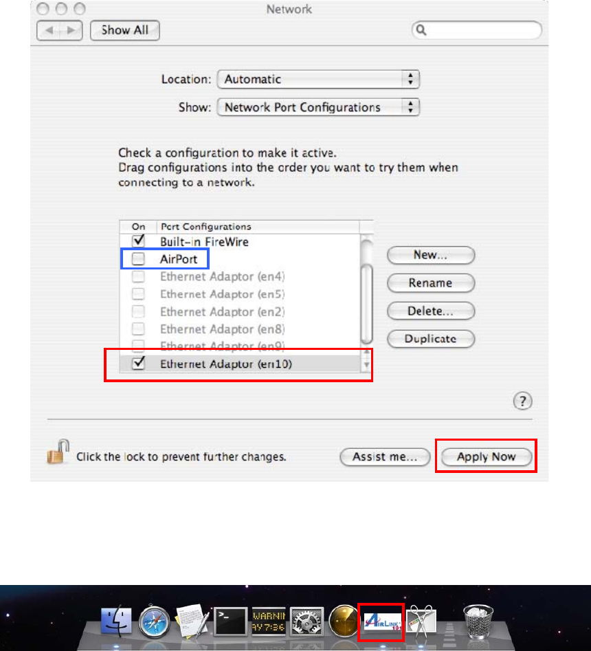Step 2 Check the Ethernet Adaptor (Airlink101 Wireless USB Adapter) and uncheck