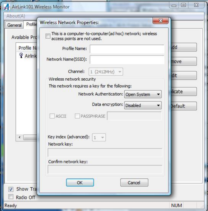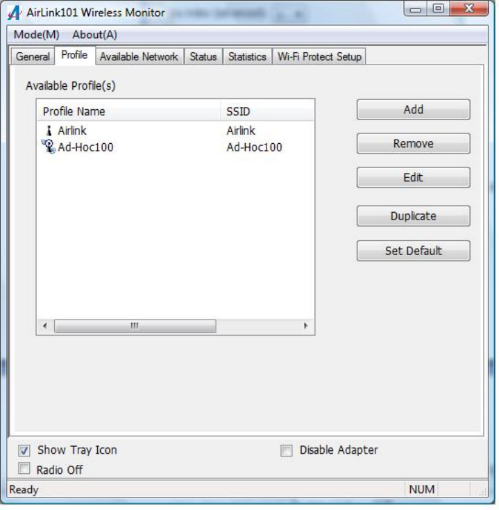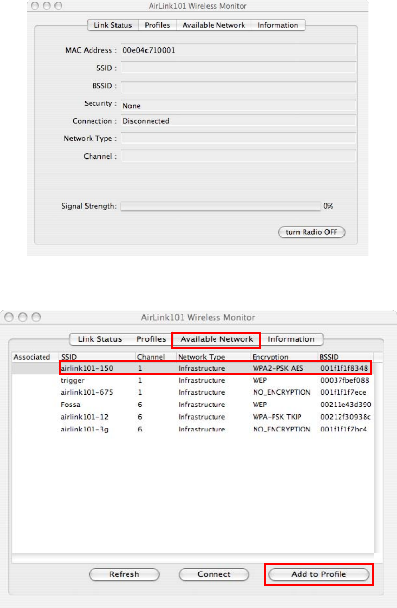 You can refer to Chapter 4, Wireless Monitor for the instructions of configuring Airlink101