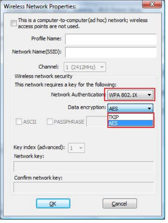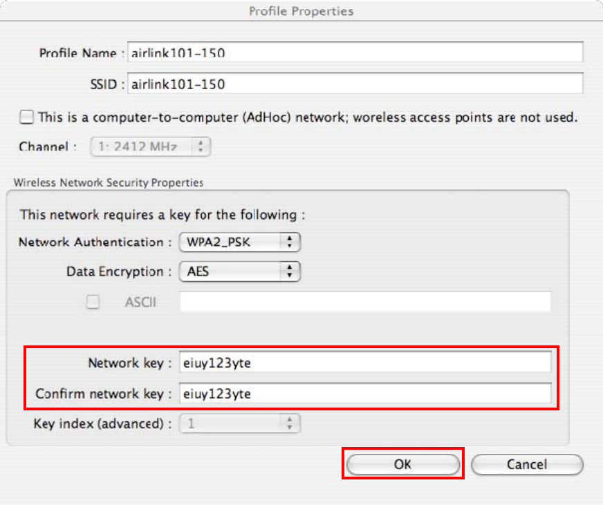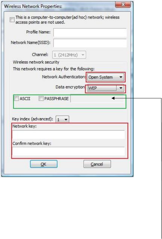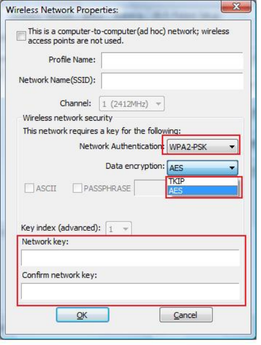 Encryption. You need to enter the security settings in the Network key, Confirm