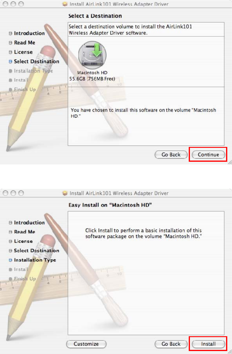 Step 6 Select a Destination: select a destination volume to install the software, and click