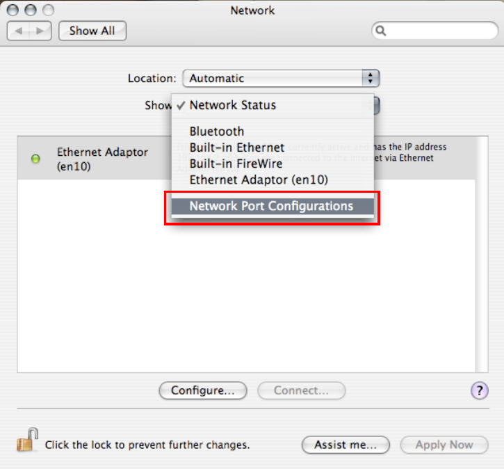 Step 1 Go to System Preferences > Network, select Network Port Configurations