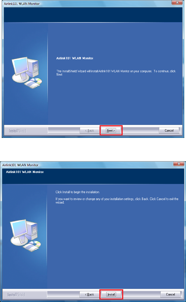 Step 2.4 The Airlink101 WLAN Monitor screen will popup. Click Next at the screen.