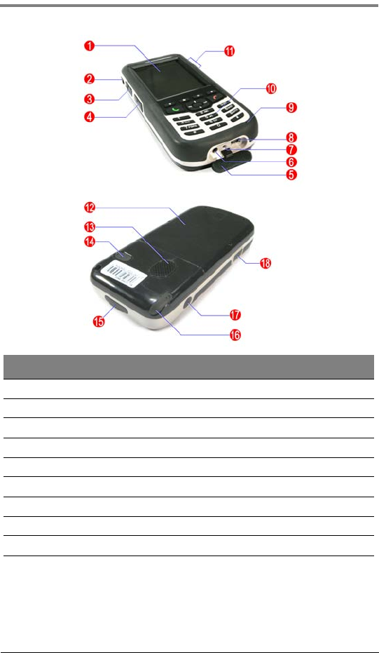 6 Earphone jack 15 miniSD card slot