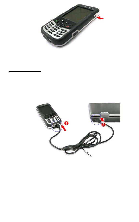 1. Connect the USB sync cable into the connector on the bottom of your device.