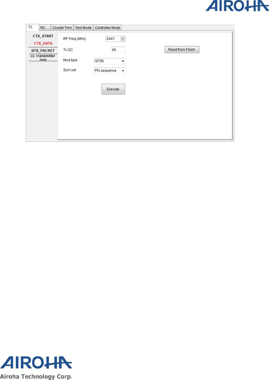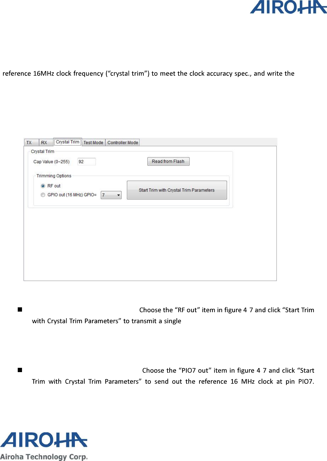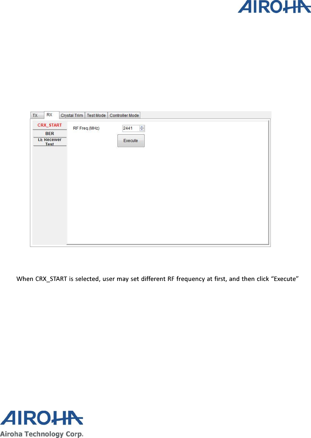Three basic functions including TX, RX and Crystal Trim are included in this utility. User may use this tool