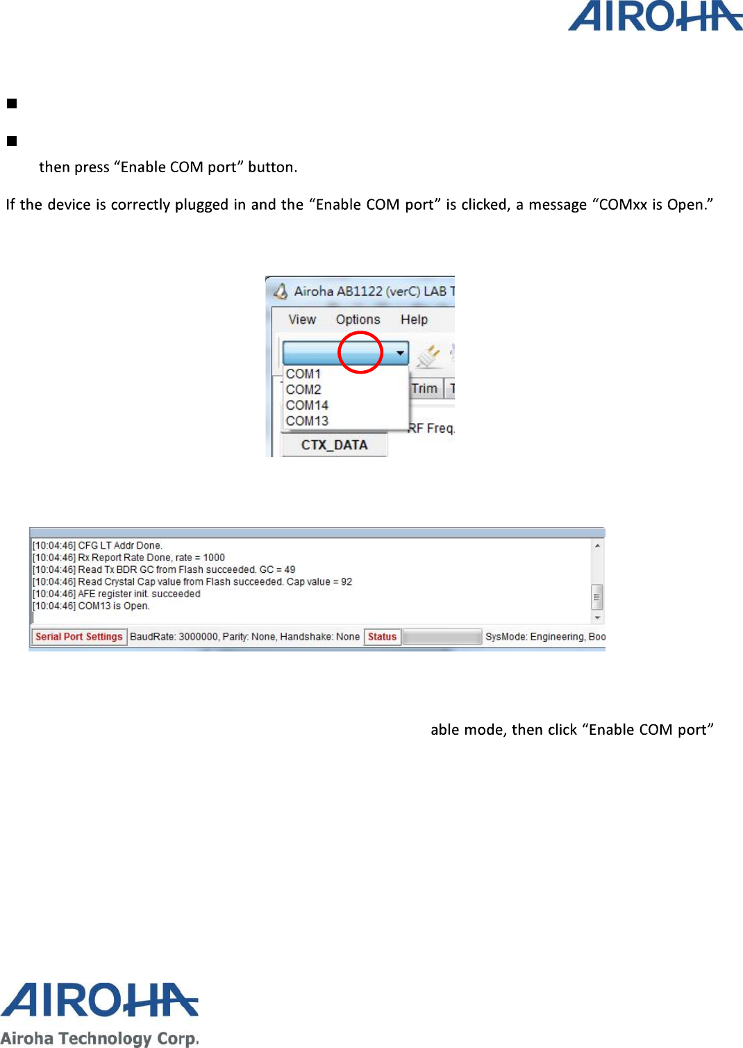 If the AIROHA USB-to-UART adaptor board is used, the driver should be installed at first