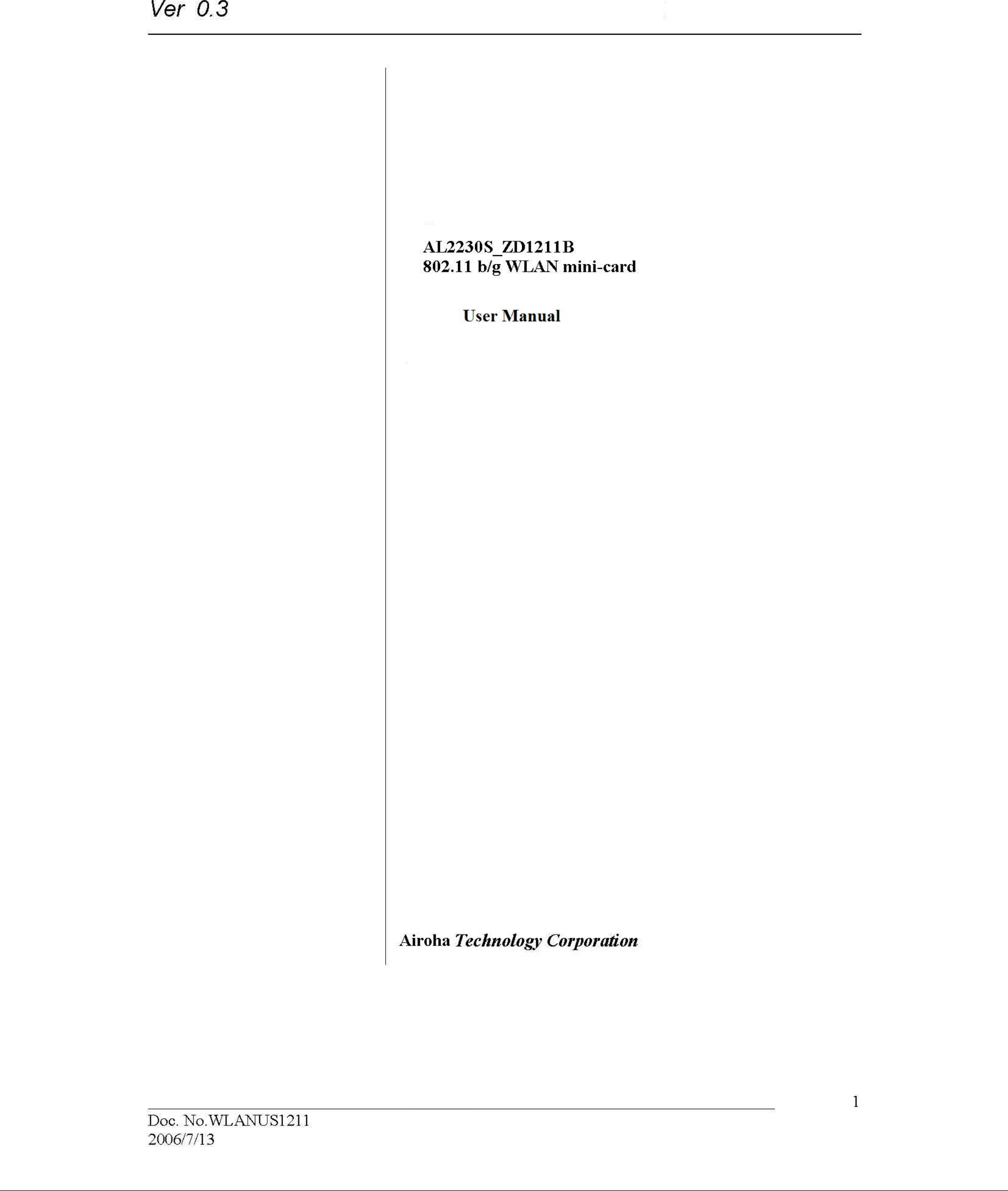 Airoha Technology AL2230S 802.11 b/g WLAN mini-card User Manual