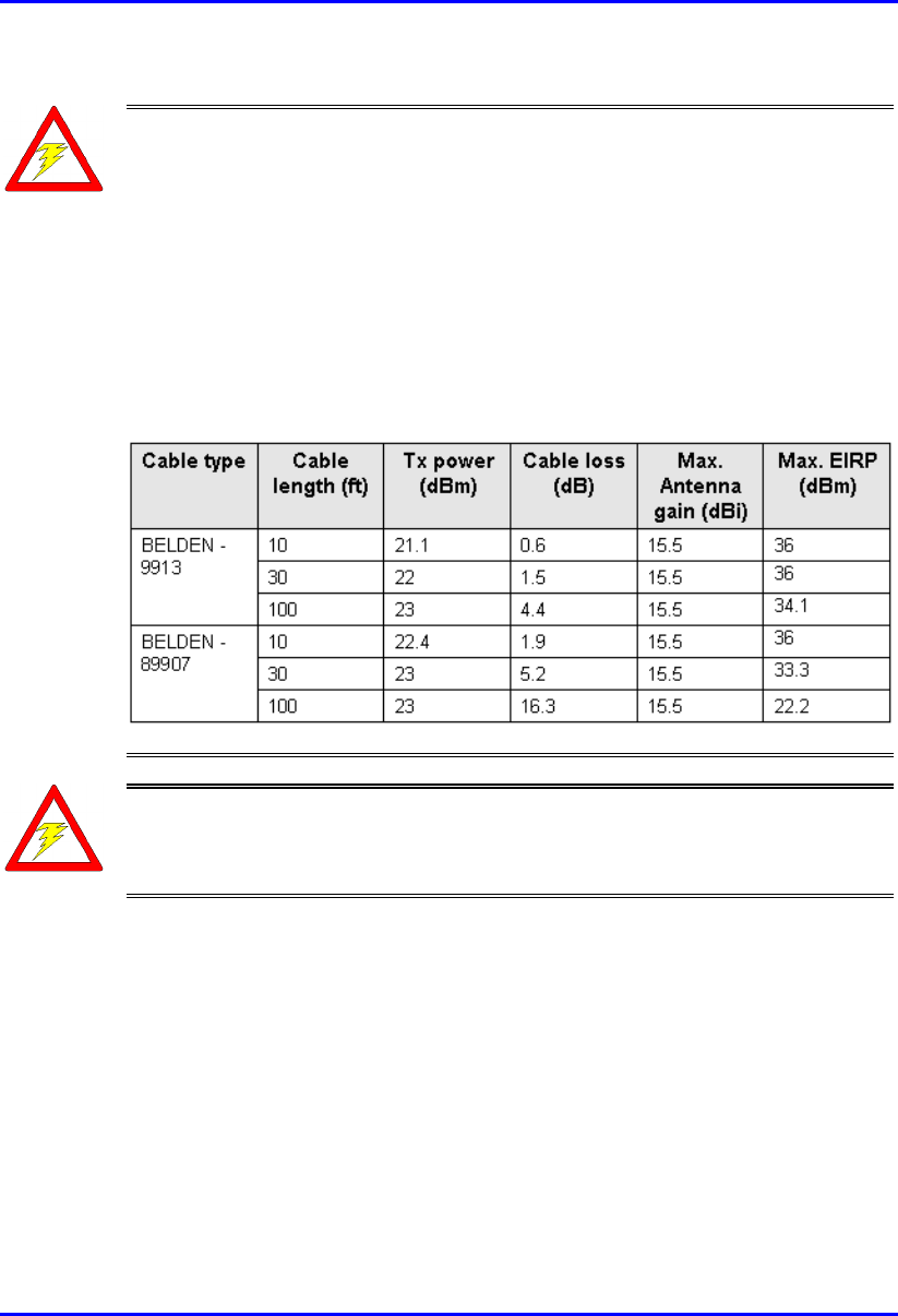 Warning: For unlicensed bands, it is the responsibility of the person installing
