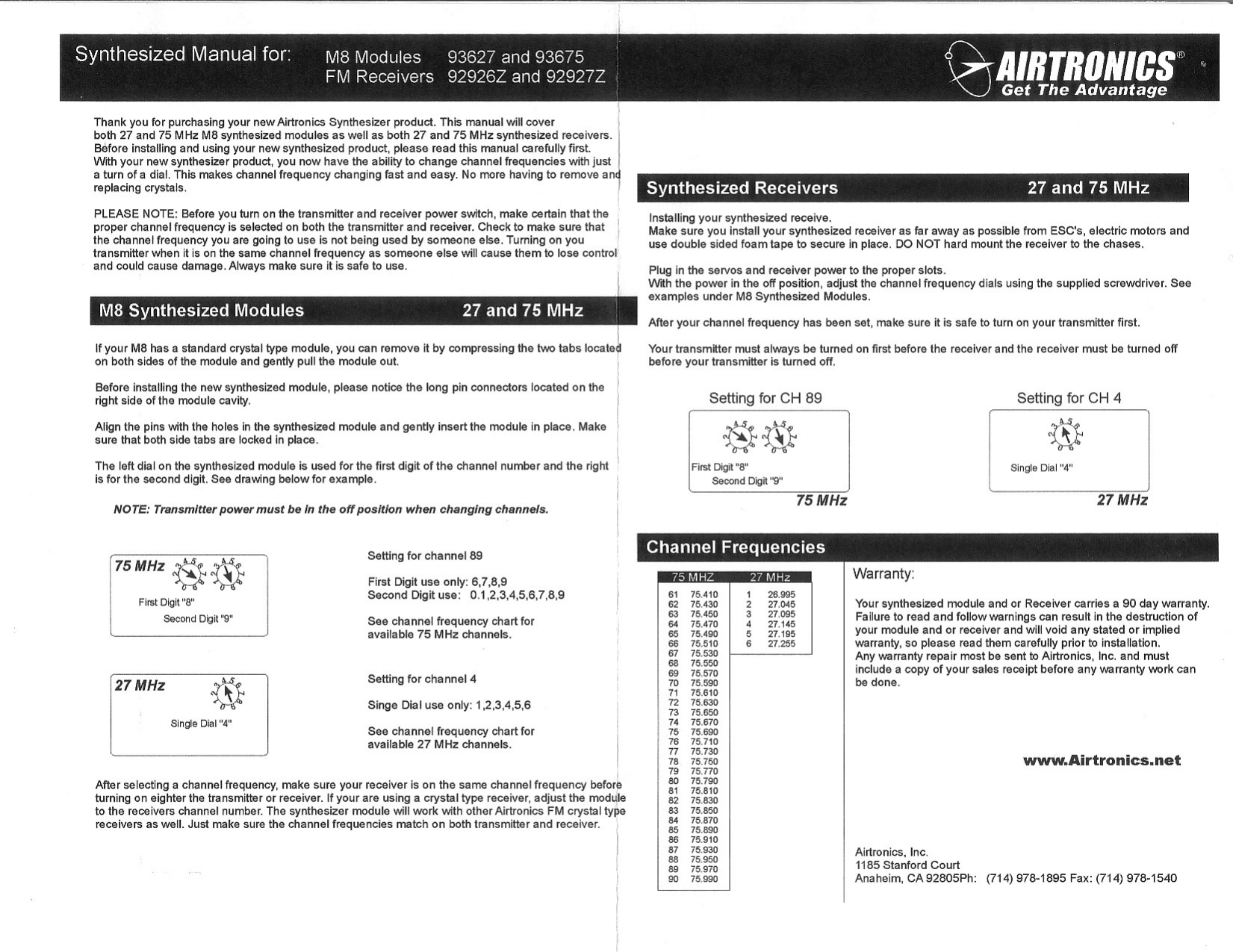 Airtronics ATX035 M8 75MHz Synthesized Module User Manual Attachment to Users Manual