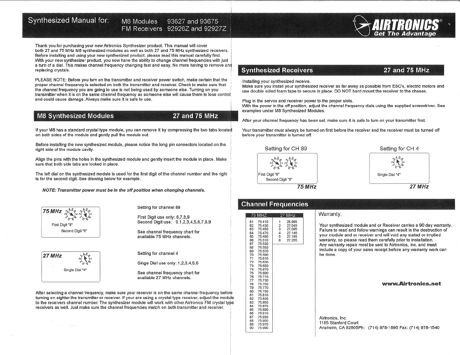 Airtronics ATX035 M8 75MHz Synthesized Module User Manual Attachment to Users Manual