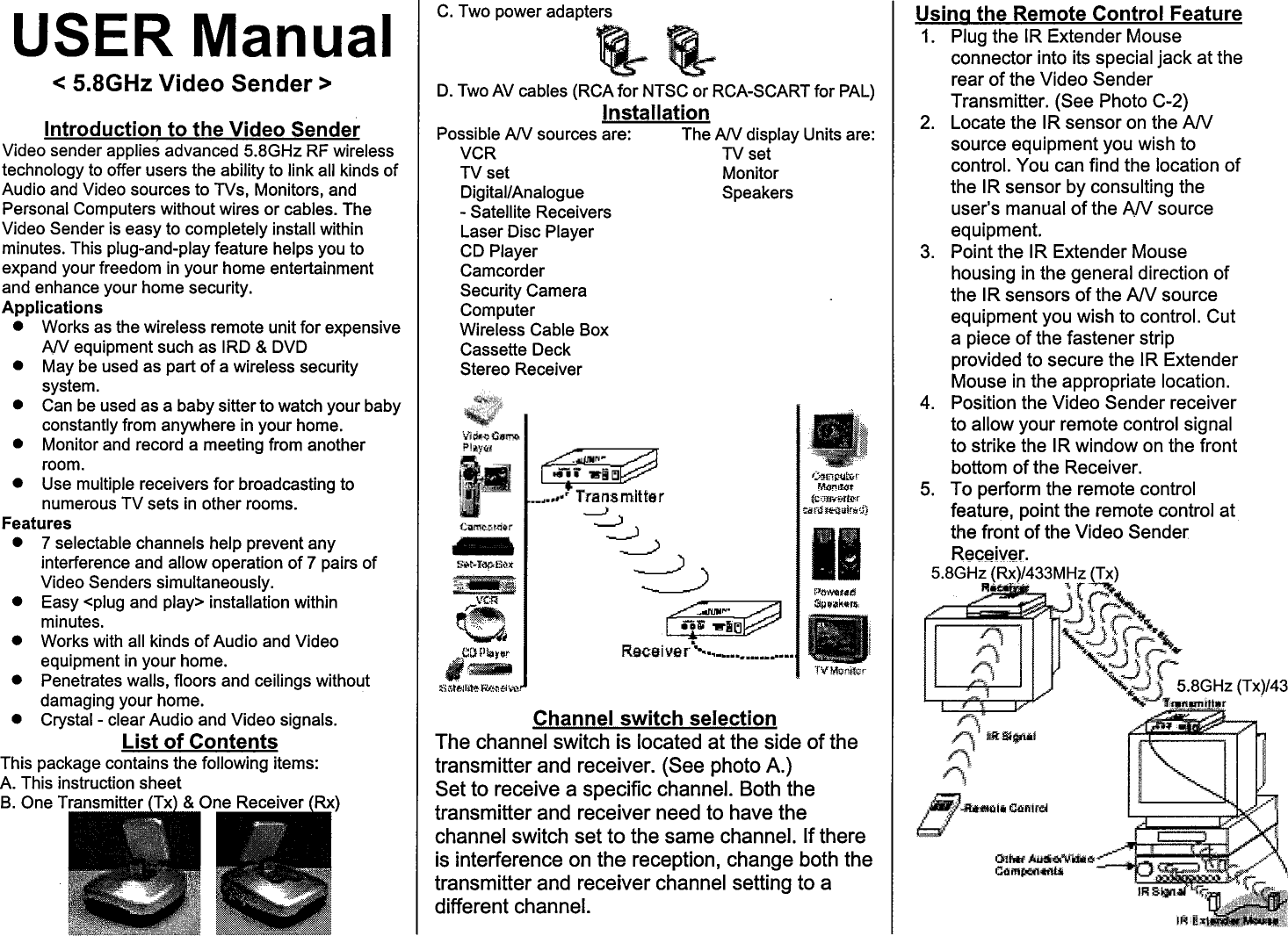 Airwave Technologies AWW698RX 5.8GHz Video Sender User Manual Manual