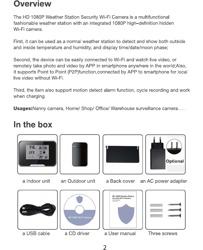 Aishine Electronics AI-WS01 Weather Station Wi-Fi Camera User Manual WS01 20160305