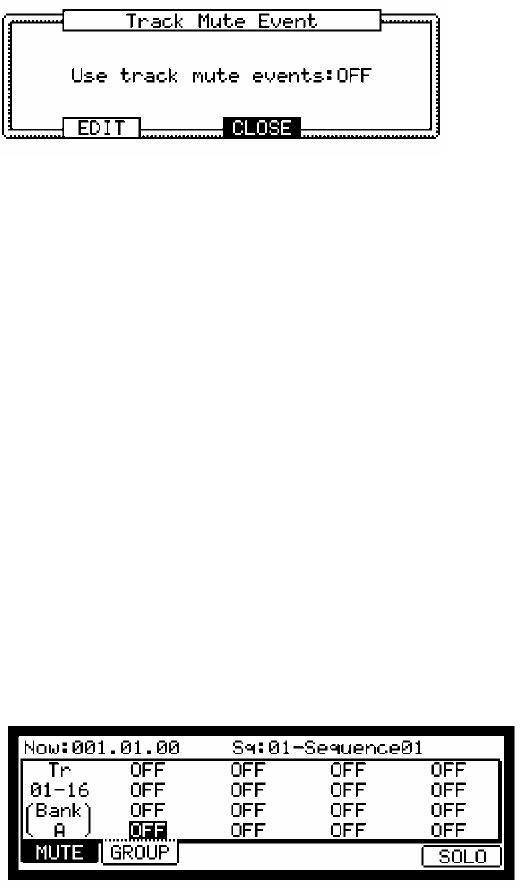 SEQ EDIT is set to TRACK MUTE automatically when SEQ EDIT is accessed in this