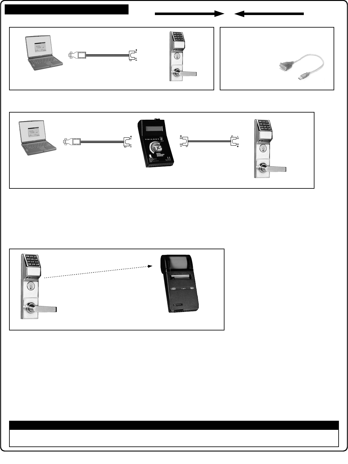 one of three ways (1) through an infrared printer; (2) directly from the lock to the PC; or (3)