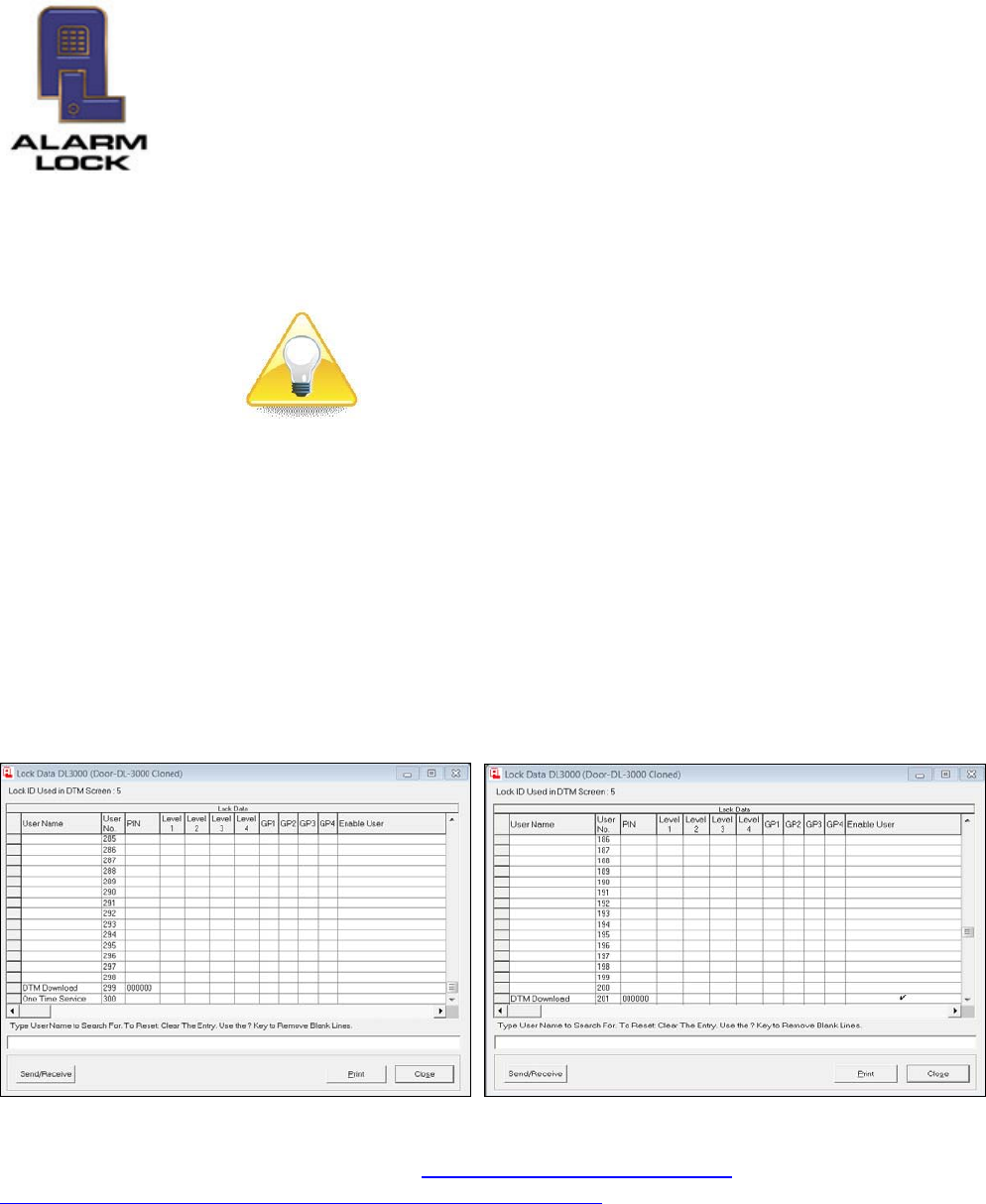 DL2800 Lock Profile, the DTM Download code (User 299) is disabled and also duplicated as