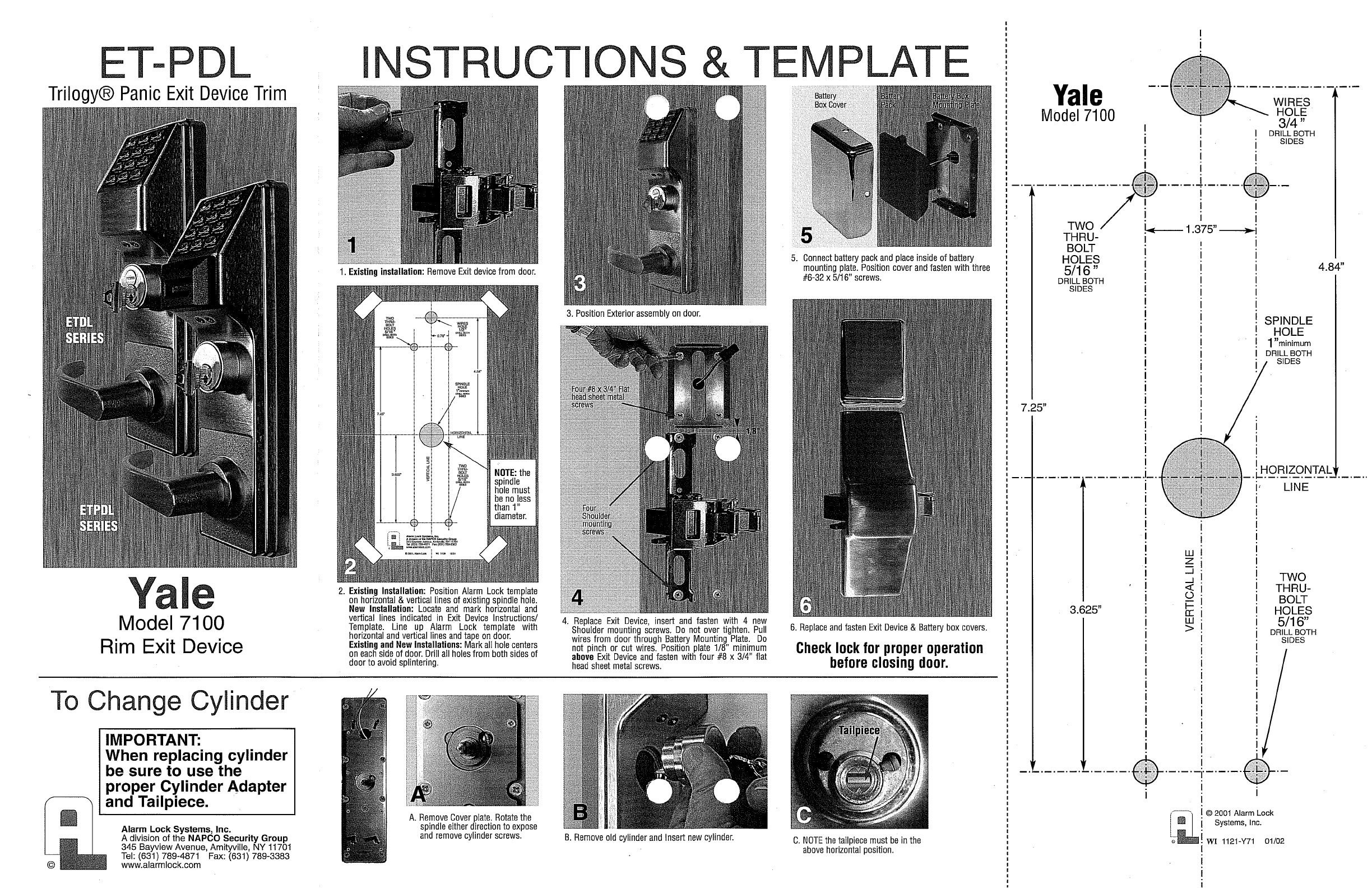 Alarm Lock Installation Instructions & : ETDLS1G/3Y71, ETDLS1G/10BY71, ETDLS1G/26DY71 ETDL INST YALE 7100