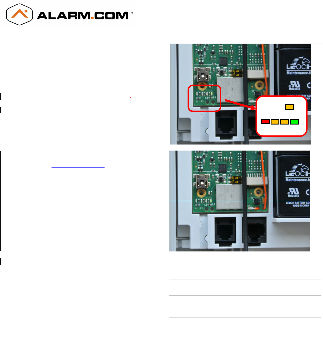 Alarm.com in Connected Mode. In PowerSave mode, this LED flashes