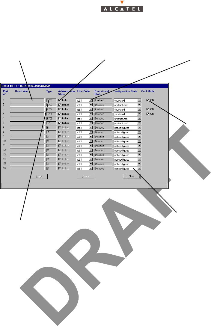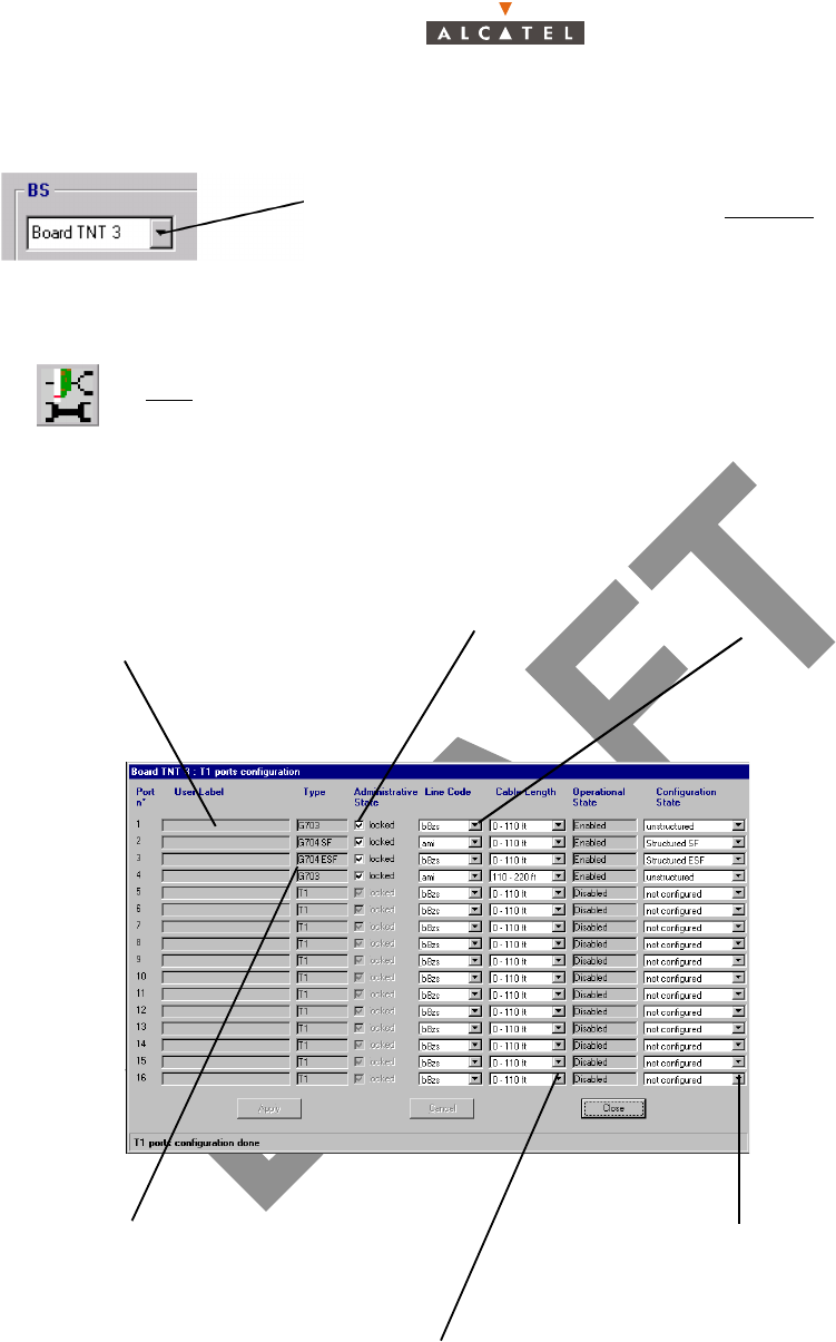 Note: The TNT board must comprise T1 type ports (see § 4.5.3.2 – TNT board screen).