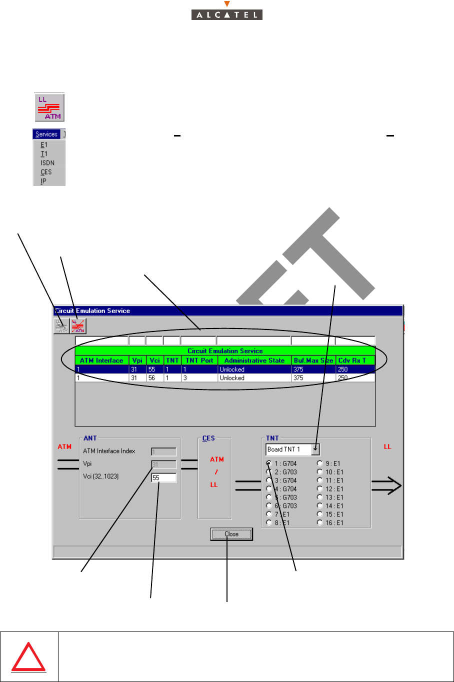 the CES is used: see § 4.12.6 – Circuit emulation (CES)) and the NT terminal (E1 port) linked to the user
