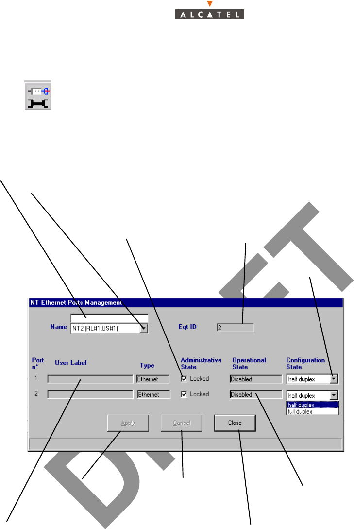2. Selection and configuration of the ports for cross-connect: NT side (see § 4.12.3.5 – Configuration