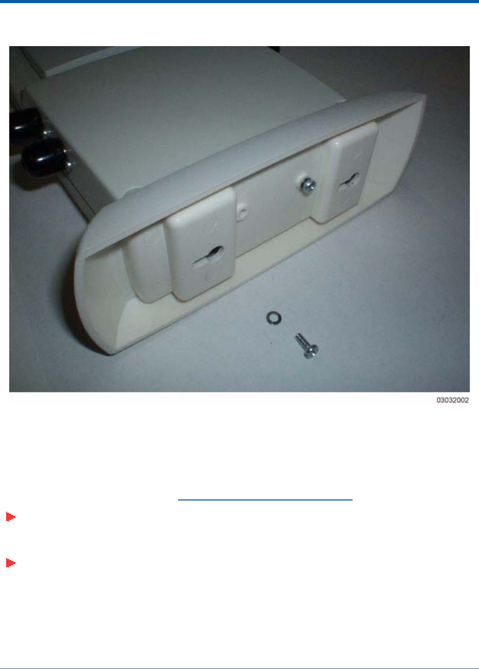 The mounting base attaches to the bottom of the OmniAccess AP with two supplied screws, and
