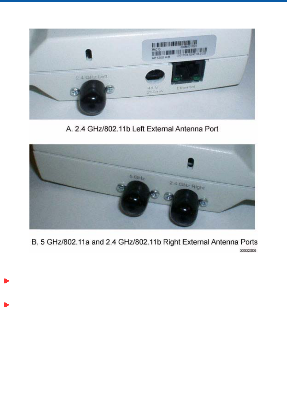 antennas to the ports on the side of the OmniAccess AP. See the following figure for antenna