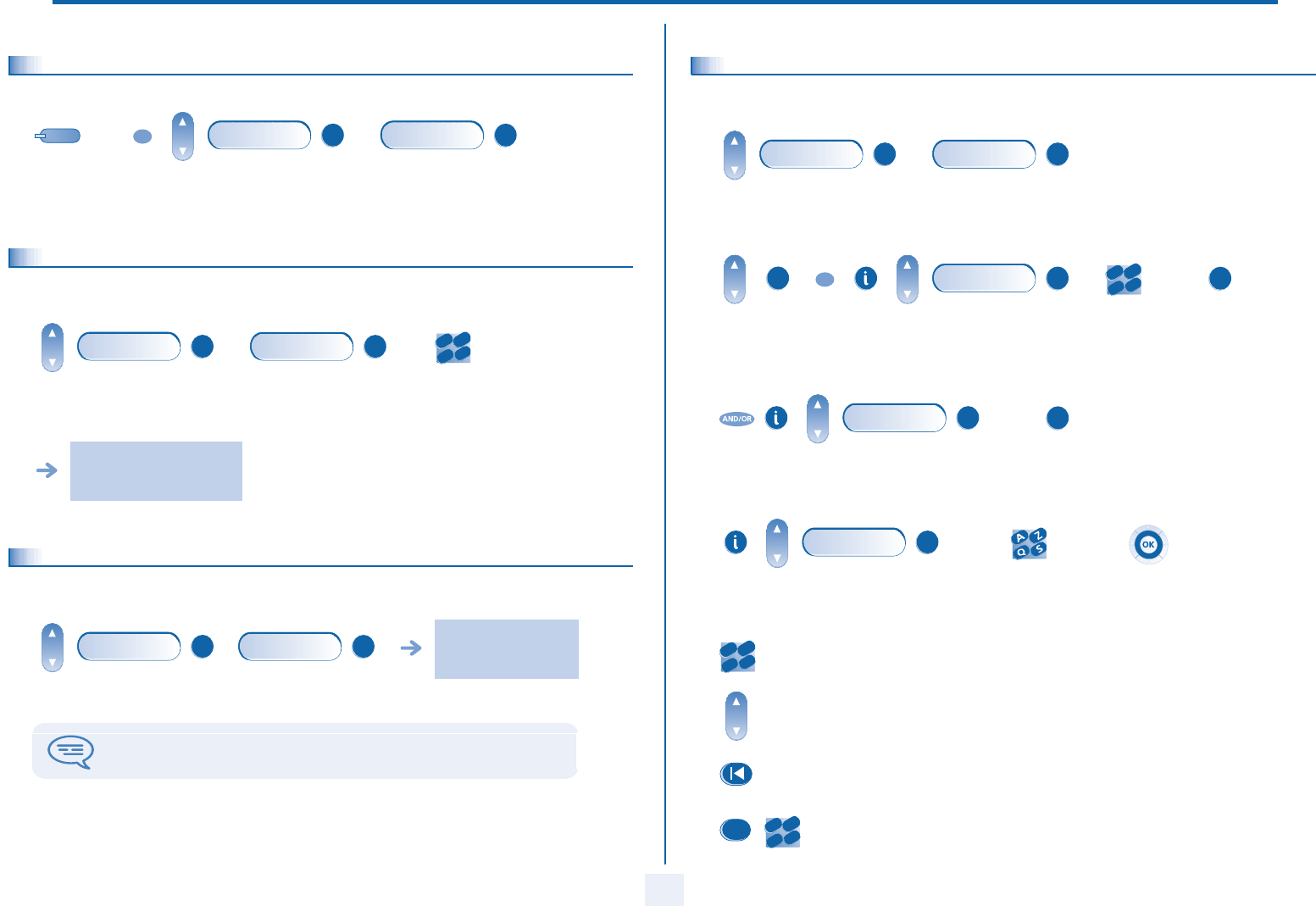 To go back one level (press and release) or to return to the welcome page (press and hold) ;