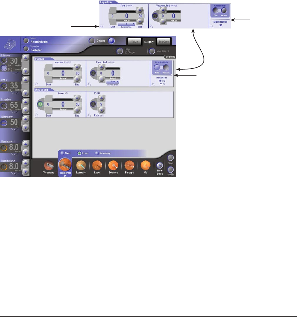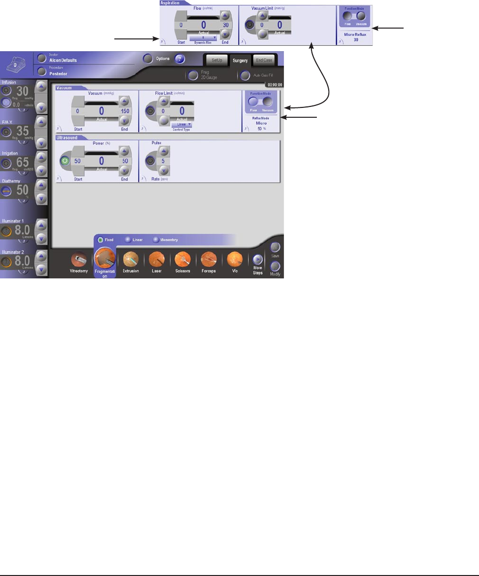 Phaco Pulse Time On Up/Down Buttons - Sets the Phaco time on percentage.
